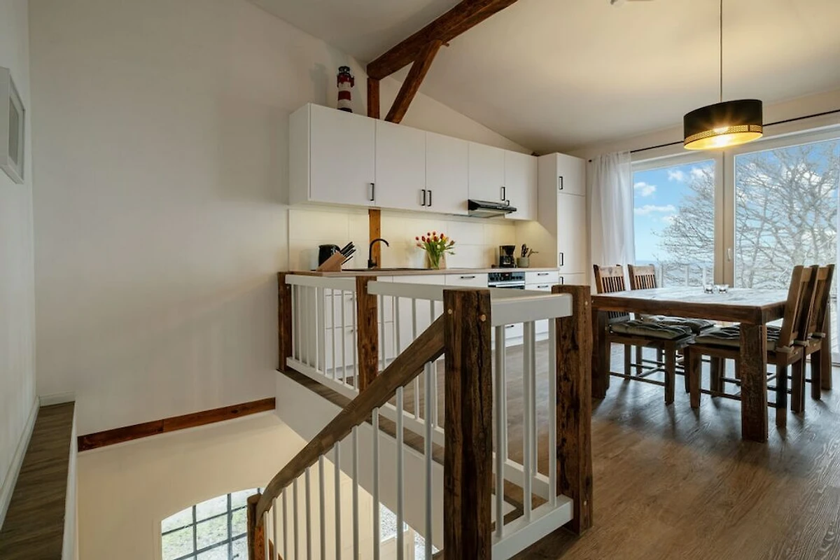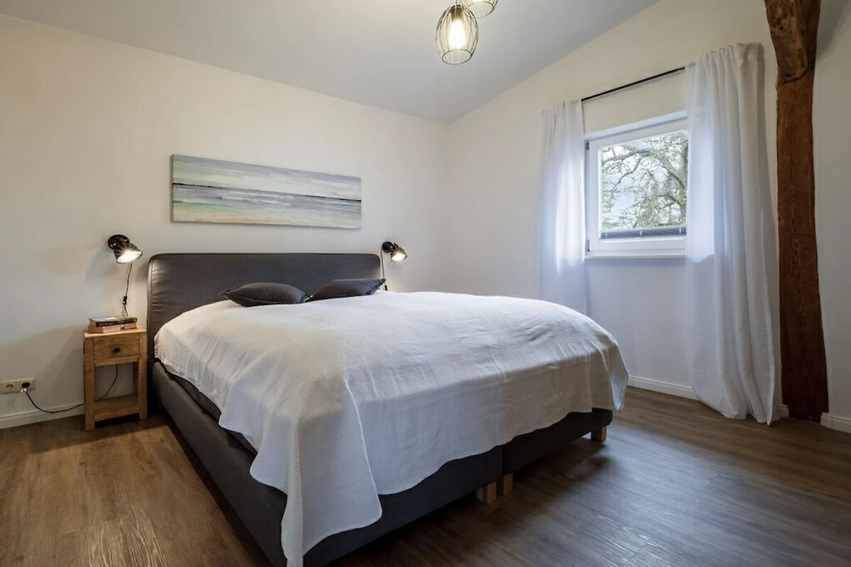Godetevi la vostra vacanza in un'atmosfera rilassata direttamente sul mare. Il nuovo appartamento Westscheune a Mühlendamm, con il suo fascino loft unico e le finestre panoramiche, offre l'ambiente perfetto per rilassarsi e rigenerarsi. Vista libera sul mare (fino alla Danimarca), sauna privata, travi a vista, camino, splendidi pavimenti in legno e un arredamento unico e di buon gusto vi invitano a sentirvi come a casa. Entrambe le camere da letto sono dotate di nuovi e comodi letti a molle. La nuova cucina abitabile, con i suoi mobili restaurati con cura, è completamente attrezzata. Qui potrete cucinare autonomamente e godervi il vostro soggiorno direttamente sulla terrazza panoramica. Il moderno bagno è dotato di una cabina doccia per il relax, riscaldamento a pavimento e lavatrice.