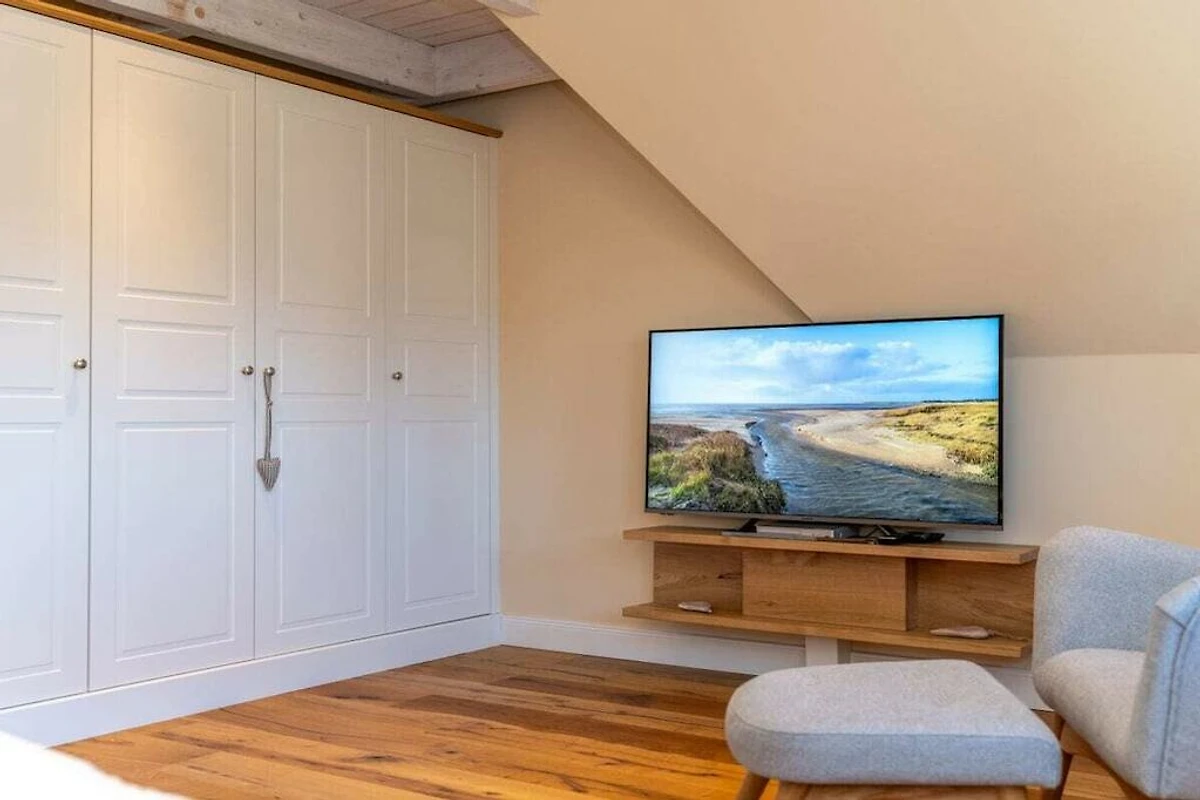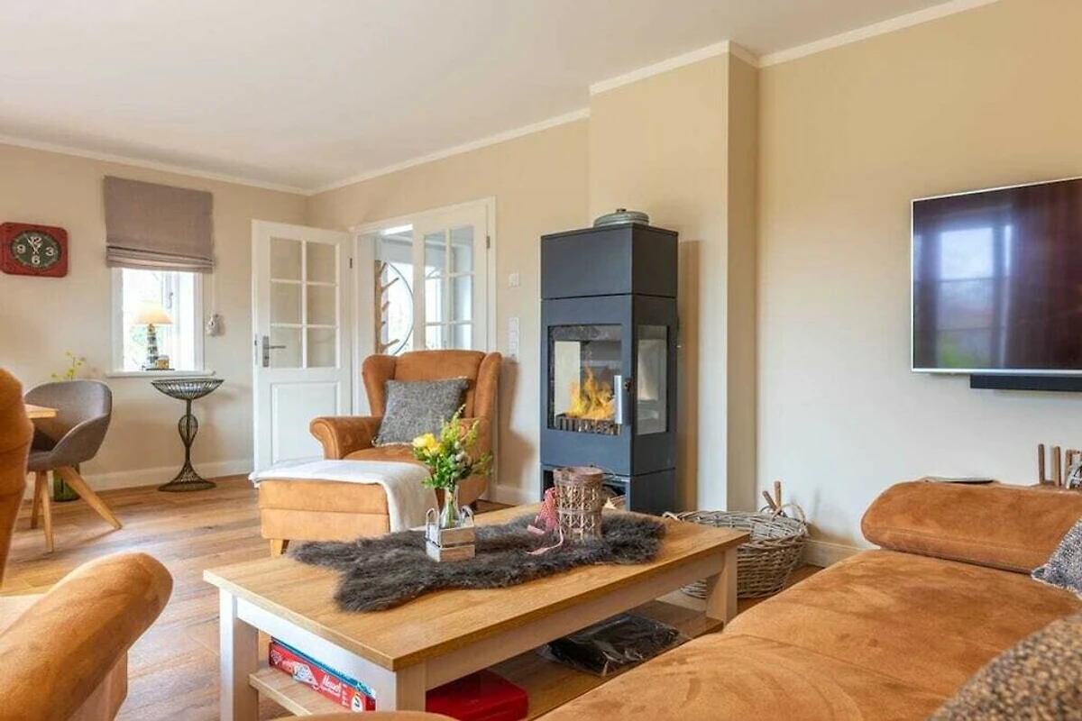 Situato in una tranquilla zona residenziale di Utersum, l'appartamento è raggiungibile a piedi da ristoranti, negozi e un panificio. La spiaggia dista solo 700 metri circa.