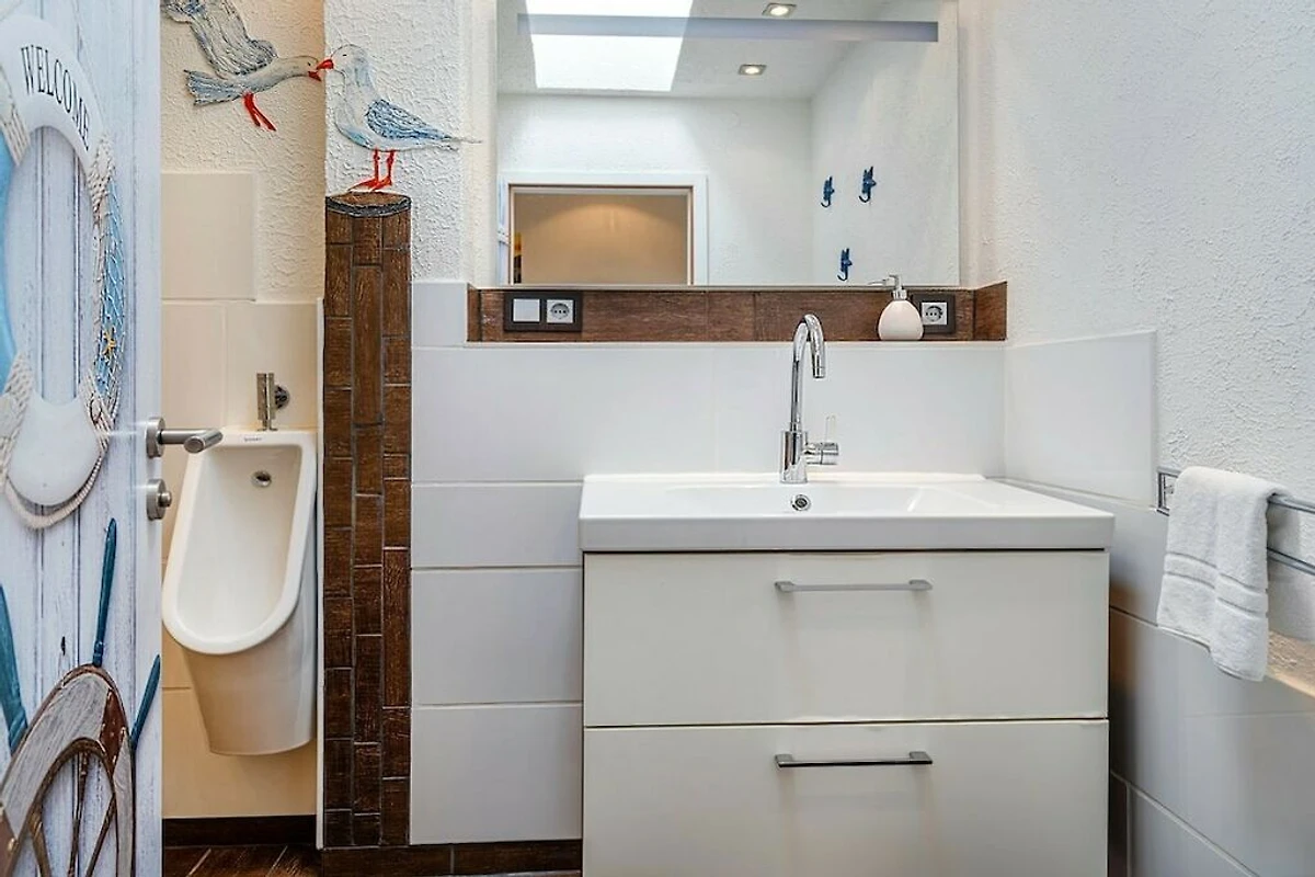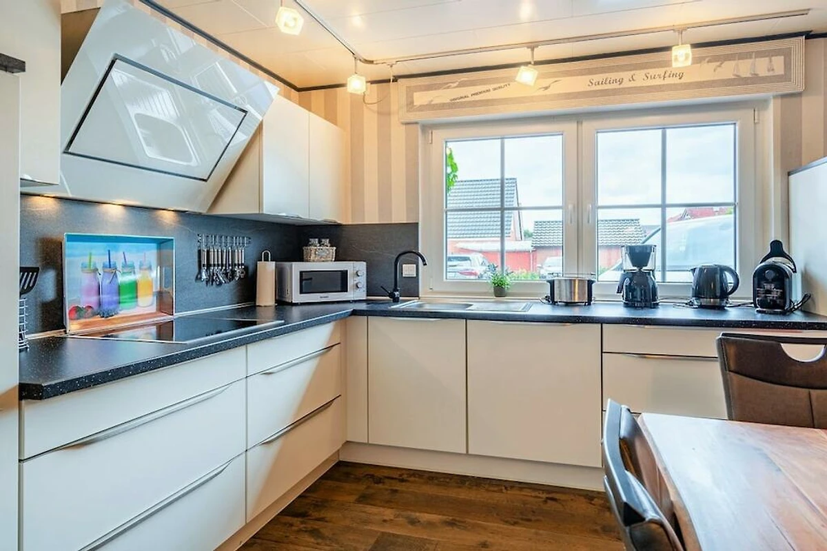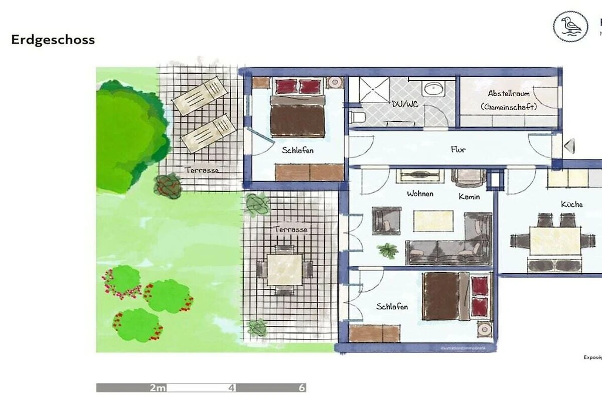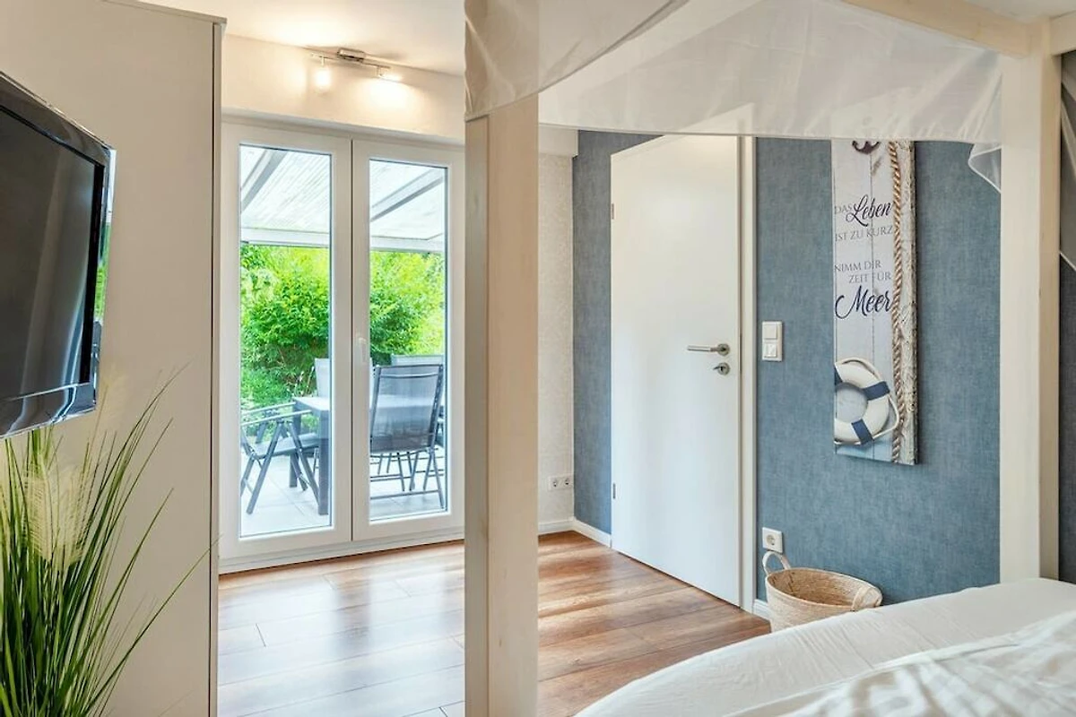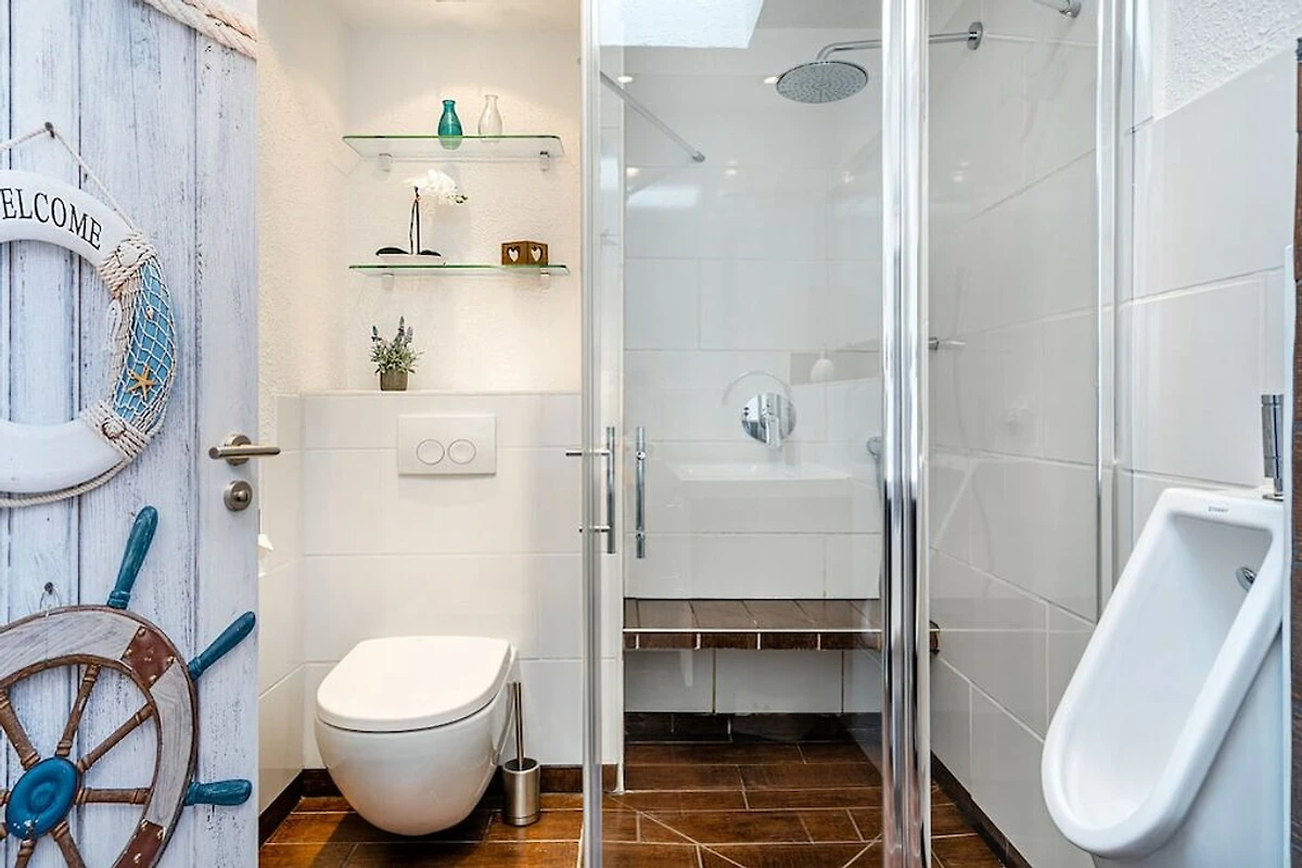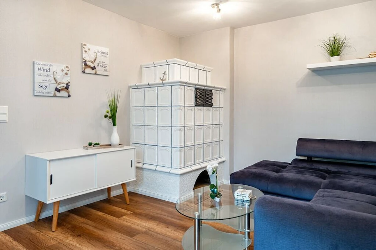 L'"Appartamento Kamin" al piano terra è stato ampiamente ristrutturato, mantenendo gli elementi tradizionali. La stufa in maiolica in stile frisone è un punto di forza! Oltre a un luminoso soggiorno e una cucina completamente attrezzata con un'ampia zona salotto, questo appartamento offre un bagno e due camere da letto, una delle quali si affaccia persino sul famoso "Mulino Verde". Rilassatevi a fine giornata sulla terrazza coperta con posti a sedere. C'è anche un'altra terrazza con lettini prendisole e vista diretta sul mulino. Anche il vostro cane è il benvenuto. Oltre al parcheggio, è disponibile anche un deposito coperto per biciclette. *L'appartamento dispone di un divano letto, quindi può ospitare fino a 6 persone su richiesta.*