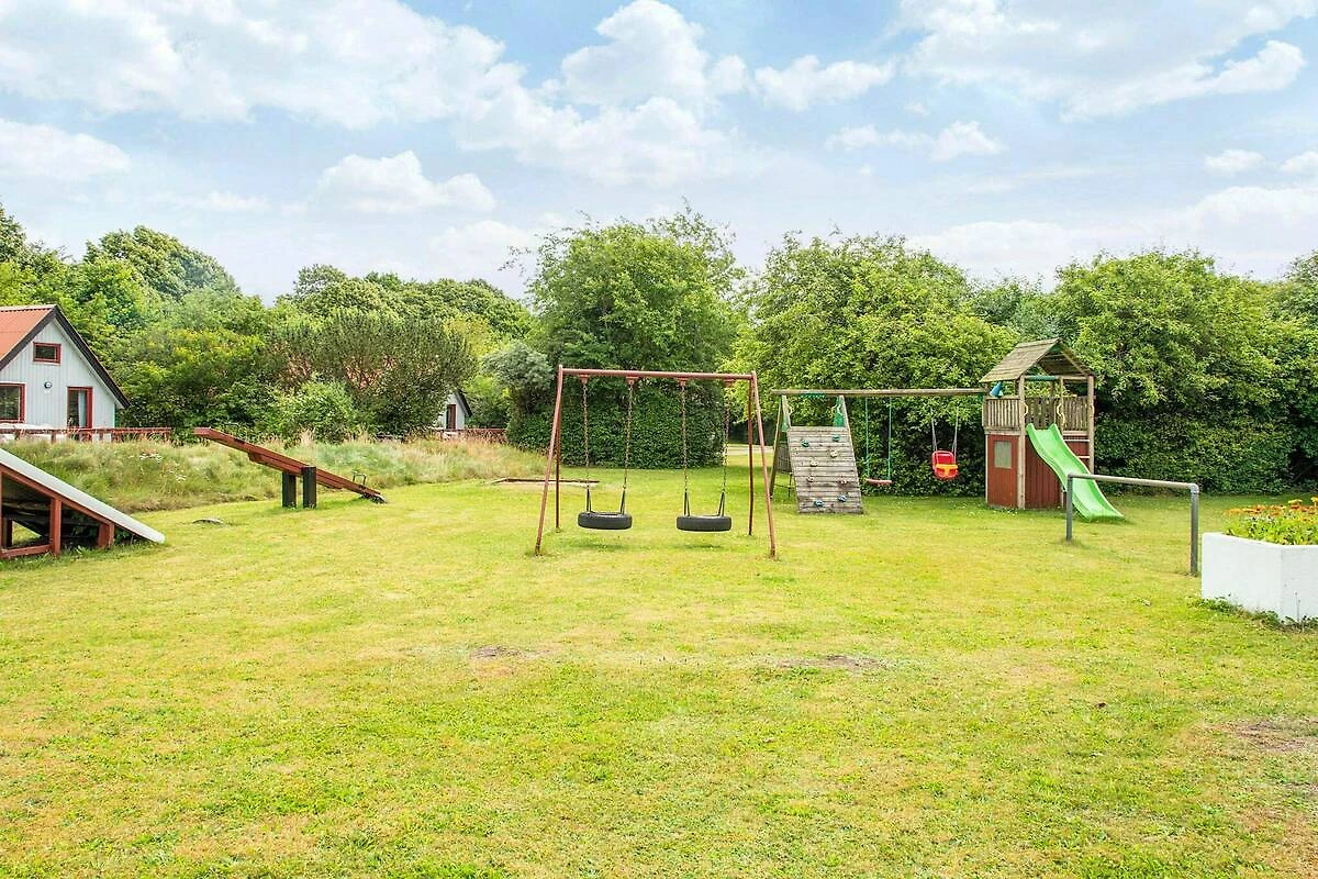 Soggiorno(brandina doppia, TV(canali TV danesi), letto per bambini), Cucina separata(mobile cucina(2 fuochi), caffettiera, frigorifero), Camera da letto(letto matrimoniale), Bagno(lavabo, doccia, WC), Soppalco aperto(2x letto a castello), riscaldamento(autonomo), terrazza, mobili da giardino, lettini prendisole, parcheggio, giochi per bambini