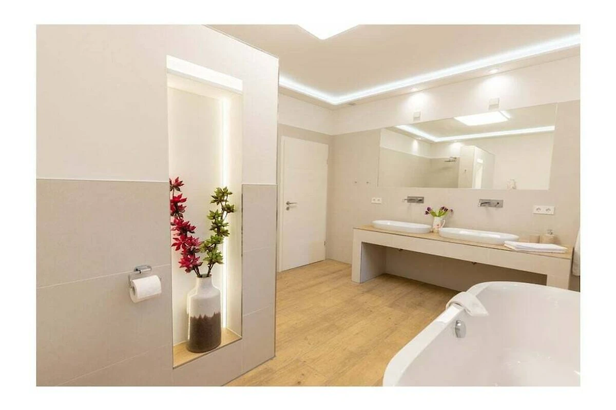 Pianterreno: (Atrio(, , riscaldamento, reti antizanzare), Cucina separata(, , , Armadio cucina, stufa, piano cottura, bollitore, tostapane, mobile cucina, caffettiera, forno, forno a microonde, lavastoviglie, frigorifero, congelatore, riscaldamento), Soggiorno / Pranzo(, TV(cavo, satellite), tavolo da pranzo, caminetto, impianto stereo, riscaldamento), Camera da letto(, , letto matrimoniale, TV(cavo, satellite), riscaldamento), Camera da letto(, , letto matrimoniale, TV(cavo, satellite), riscaldamento), Camera da letto(, , letto matrimoniale, TV(cavo, satellite), riscaldamento), Bagno(, Bagno di servizio, vasca, doccia, lavandino, riscaldamento, reti antizanzare), Bagno(doccia, lavandino, WC, riscaldamento, reti antizanzare), spazio relax(sauna))
