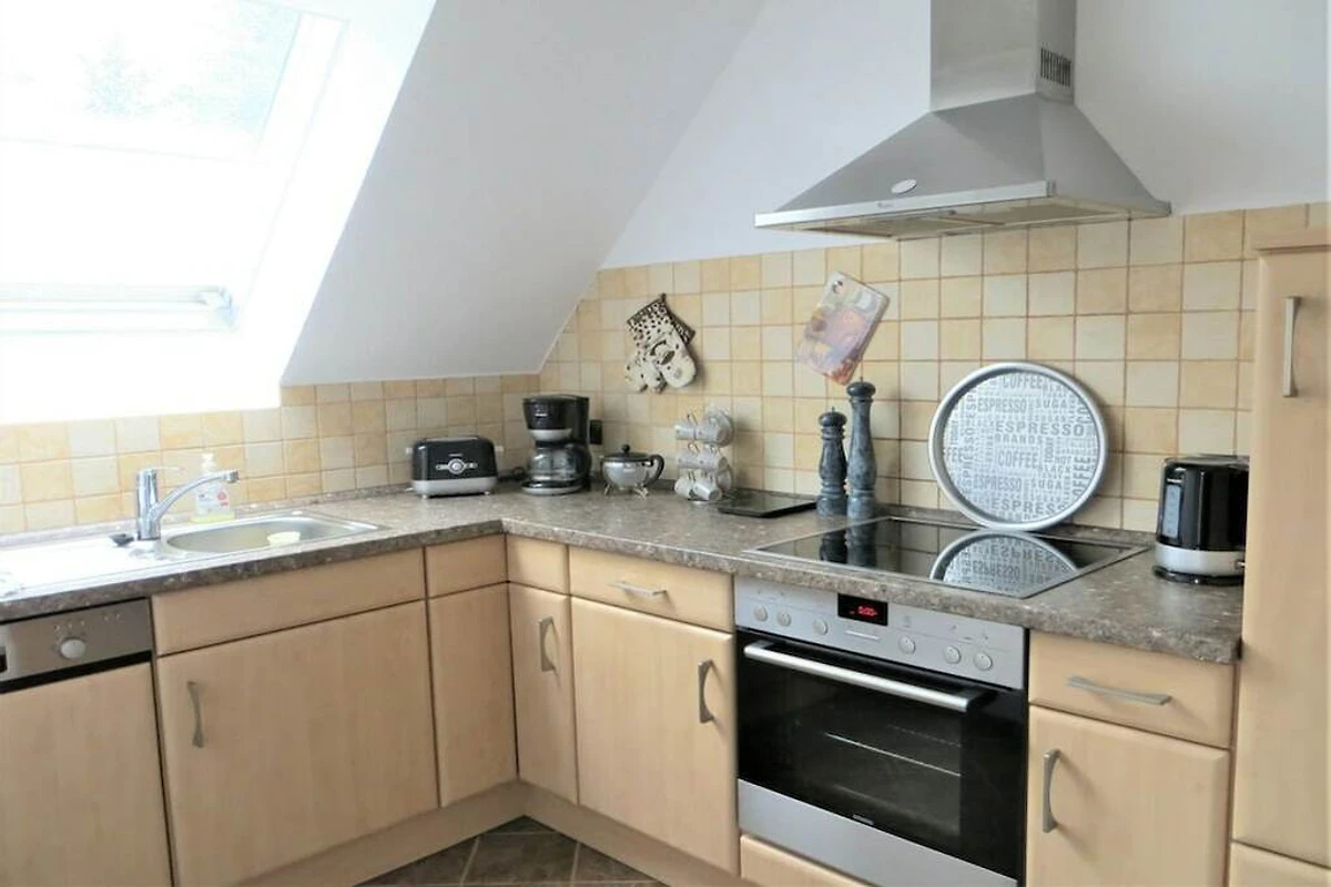 La cucina attrezzata offre tutto il necessario per cucinare, inclusi forno, piano cottura in vetroceramica e lavastoviglie.