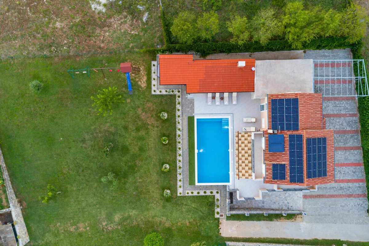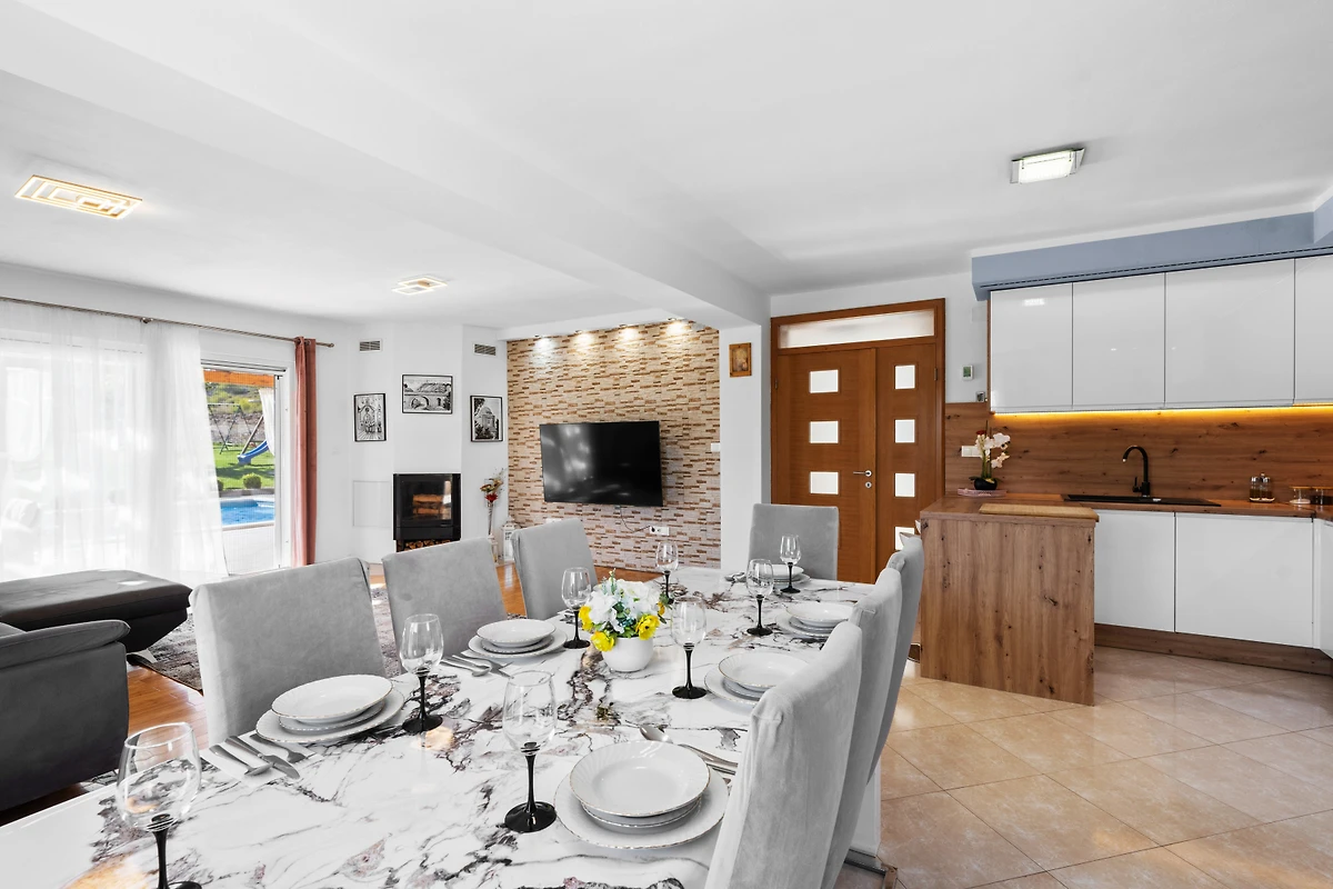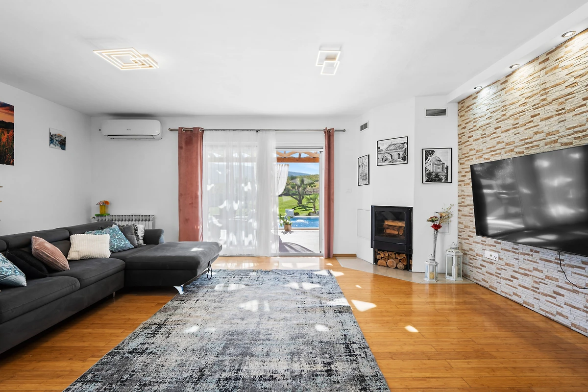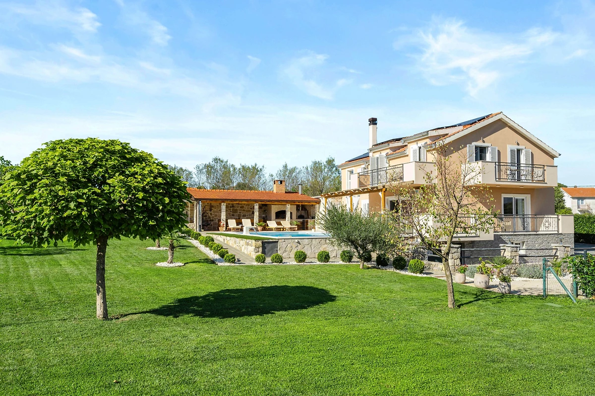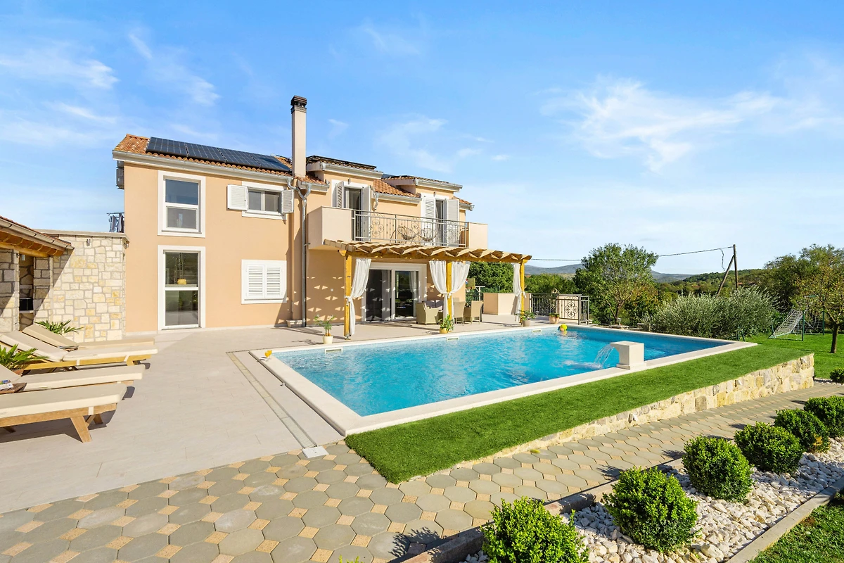Scopri Villa Pleter, un ampio e accogliente rifugio rurale immerso nel tranquillo paesaggio di Ružić, ideale per famiglie e coppie che cercano una fuga all'insegna della pace.