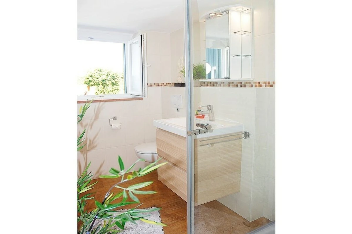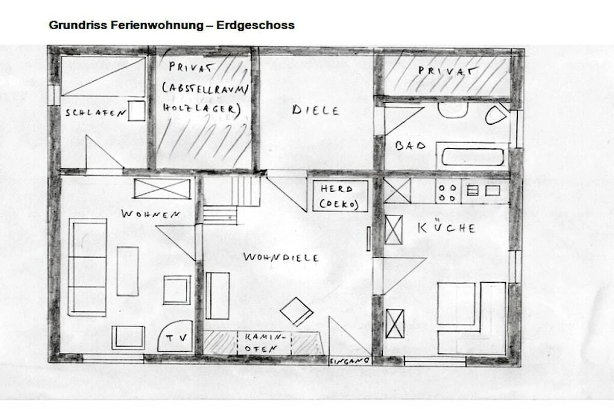 Circa 90 m² di spazio abitabile sono disponibili su due piani per 2-4 persone. L'appartamento offre un'accogliente zona giorno e una cucina comodamente attrezzata con lavastoviglie, forno a microonde e molto altro. Ci sono tre camere da letto, un bagno con doccia/WC e un ampio soggiorno al piano superiore. Il camino offre ulteriore calore e comfort nelle giornate più fresche.