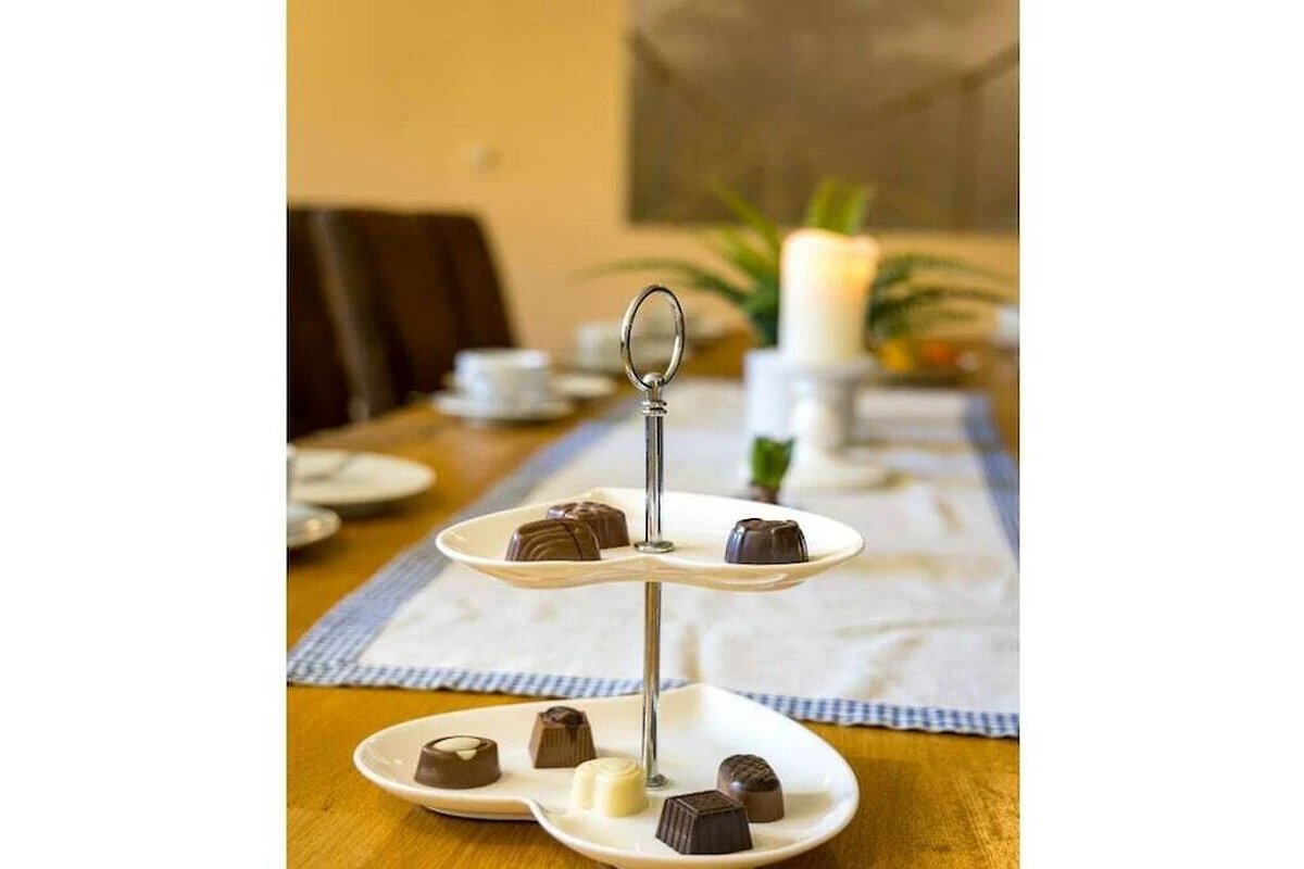 L'appartamento Goddelsbach al piano terra (190 mq) dispone di cinque camere da letto con letti matrimoniali e due letti aggiuntivi, potendo così ospitare 10-12 persone. La zona soggiorno/pranzo (circa 50 mq) con cucina adiacente non vi farà sentire stretti. Un comodo divano, TV a schermo piatto e Wi-Fi, tavoli da pranzo con vista sul bellissimo giardino e una cucina attrezzata con lavastoviglie, piano cottura a induzione, forno, macchina per il caffè e frigorifero con congelatore non lasciano nulla a desiderare. Gli ospiti hanno accesso alla lavanderia privata tramite le scale, disponibile su appuntamento. La lavanderia è disponibile su richiesta. Area salotto all'aperto con barbecue in riva al ruscello.