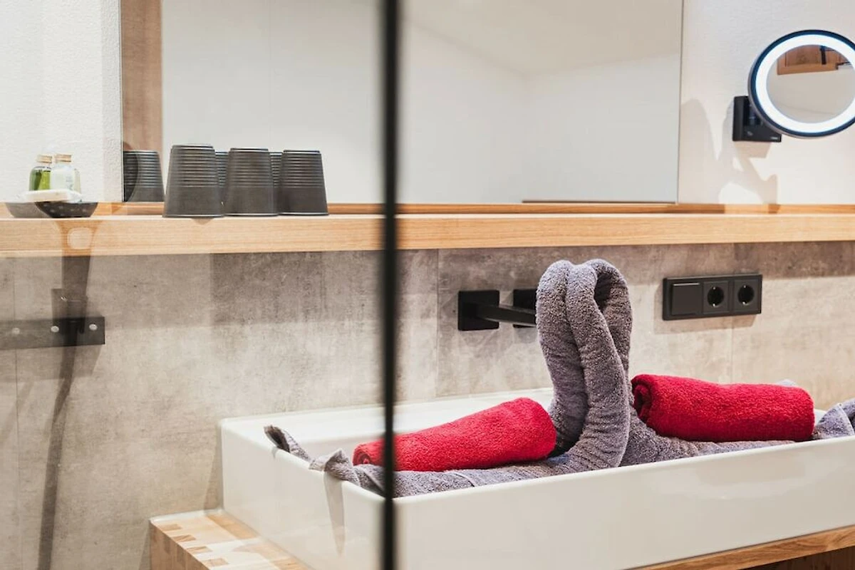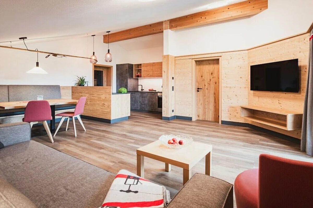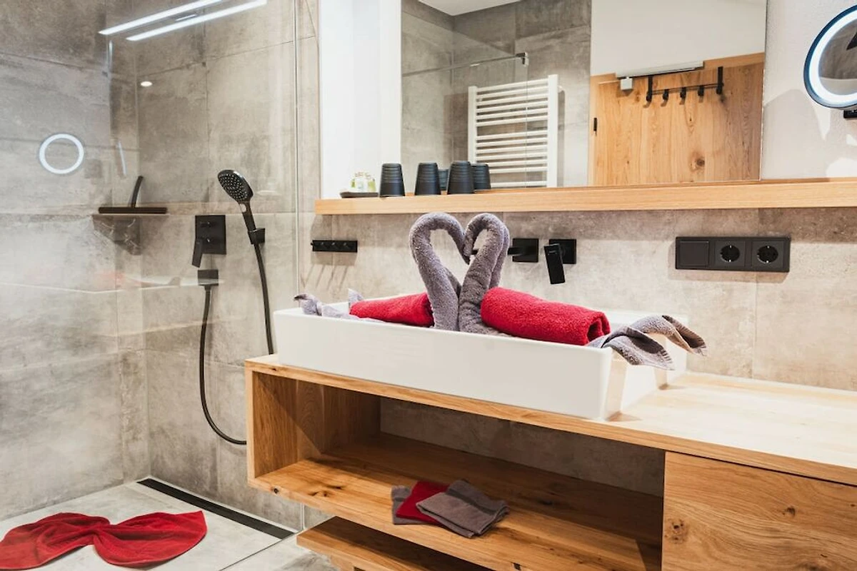 Affittiamo un appartamento per le vacanze con una cucina-soggiorno completamente attrezzata (frigorifero con congelatore, forno, piano cottura in vetroceramica, lavastoviglie, macchina da caffè completamente automatica, tostapane, cuociuova, frullatore, bilancia da cucina, carta da forno, sale, pepe e pastiglie per lavastoviglie). Dispone di una confortevole zona soggiorno con TV a schermo piatto e accesso a un ampio balcone. I nostri letti Edelweiss sono dotati di materassi di diversa rigidità, reti a doghe regolabili e cassaforte. La TV satellitare è disponibile anche nelle camere da letto. I nostri bagni sono dotati di specchio cosmetico, asciugacapelli, carta igienica e sgabello per bambini.
