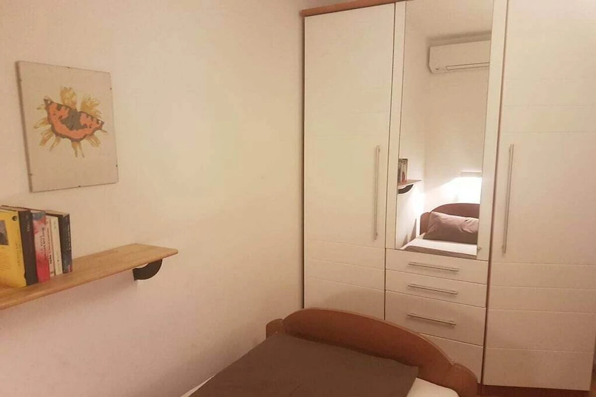 L'ampio appartamento per vacanze al piano superiore, Croatia 1 (100 m²), è adatto per 4-6 persone e dispone di tre camere da letto, tutte dotate di aria condizionata.
