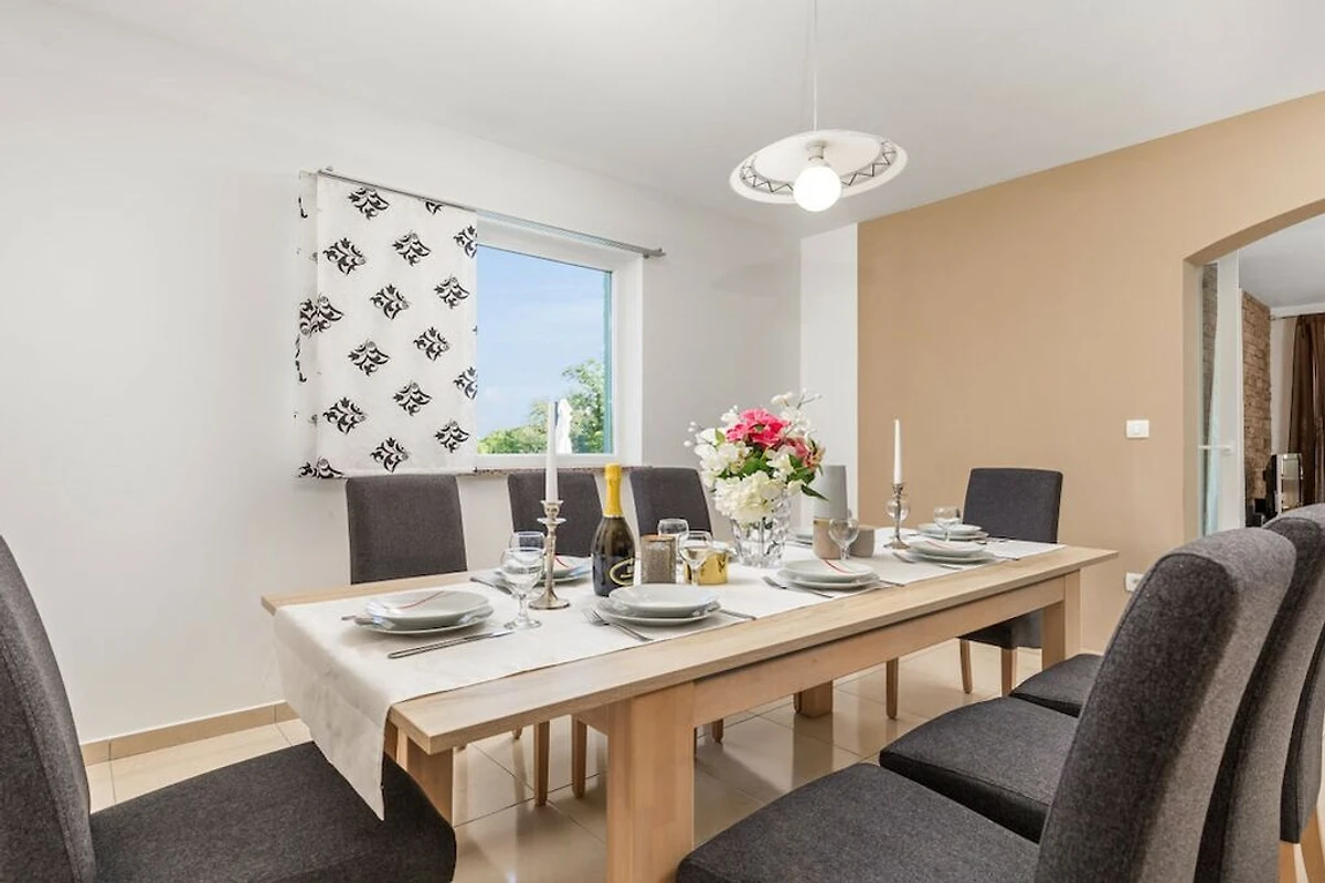 Villa Aurelia, situata nel villaggio istriano di Kunj, può ospitare 6 persone in 3 camere da letto, ciascuna dotata di letti matrimoniali, bagno privato e aria condizionata. Il piano terra di Villa Aurelia è composto da un ampio open space con cucina, zona pranzo e soggiorno e servizi igienici separati.
