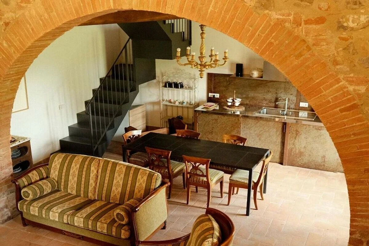 L'agriturismo, recentemente ristrutturato e ospitato in edifici del XVIII secolo, si trova vicino a Montepulciano, nella Toscana meridionale, e offre un'ampia piscina di acqua salata con terrazze che offrono una splendida vista sulla campagna fino a Montepulciano. L'ampio giardino, con il suo labirinto di erbe aromatiche etrusche e un piccolo vigneto, offre diverse aree appartate, come un pergolato, un cortile ombreggiato e una loggia coperta.