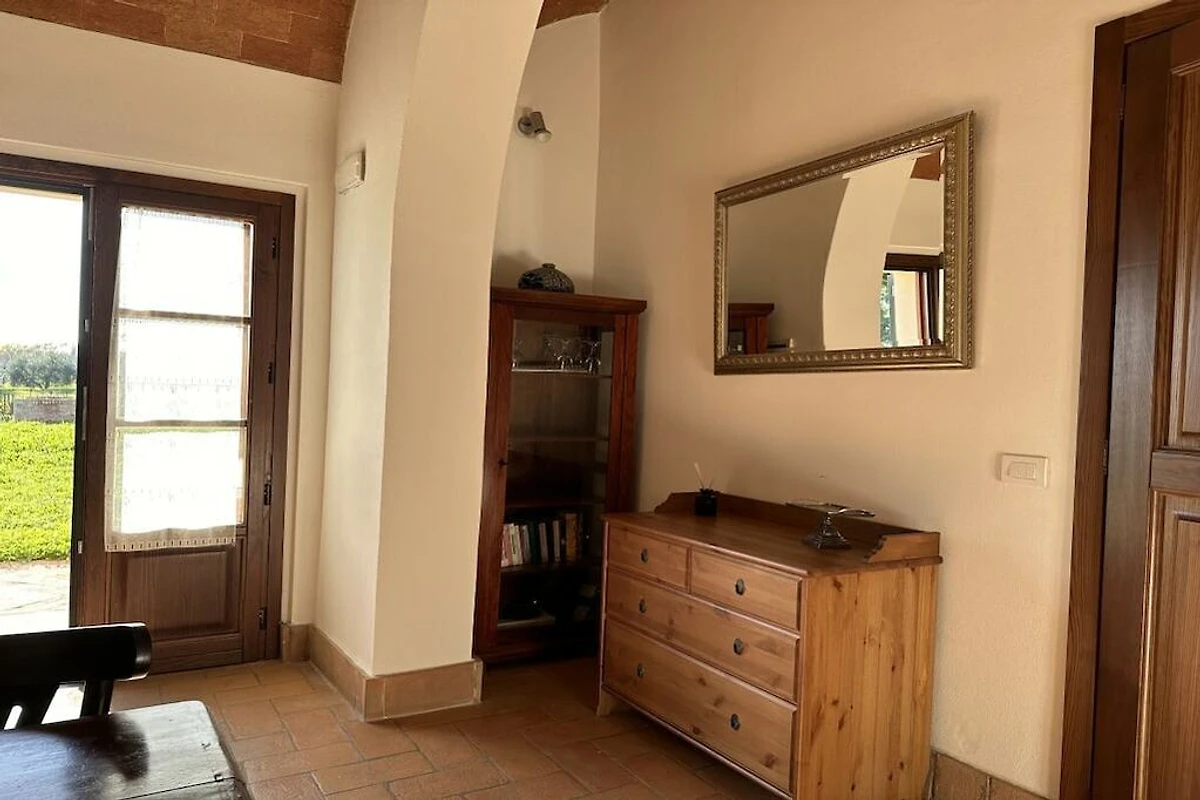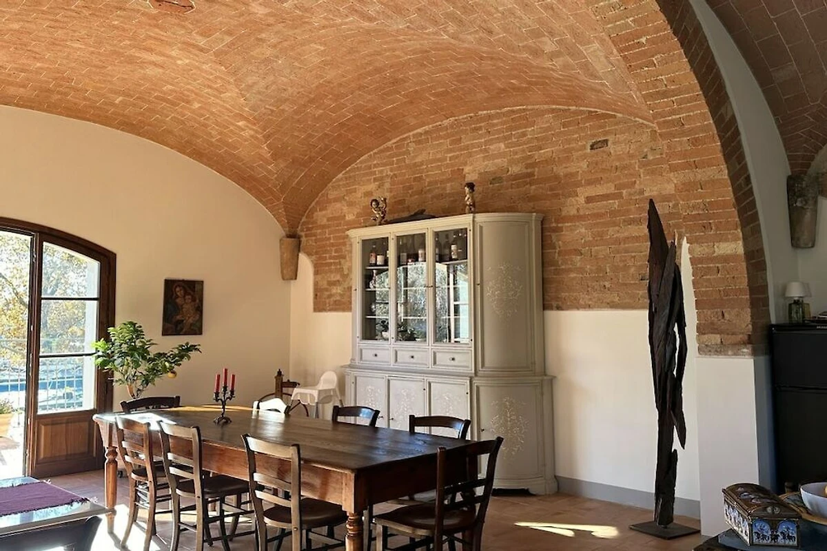 L'appartamento si trova in una tenuta aristocratica del XVIII secolo recentemente restaurata, che un tempo ospitava una fornace. Dall'ampio giardino (con un labirinto di erbe aromatiche in stile etrusco) e dalla terrazza solarium a bordo piscina di acqua salata, si può ammirare la vista sui vigneti fino a Montepulciano. Un pergolato, due cortili e una loggia coperta offrono pace e ombra. La colazione viene servita nella "Sala della Cupola", l'ex stalla meticolosamente restaurata, dove si svolgono anche i nostri concerti estivi. I bambini potranno divertirsi con un lungo scivolo che scende fino al vigneto e con l'ampio prato per i loro giochi.