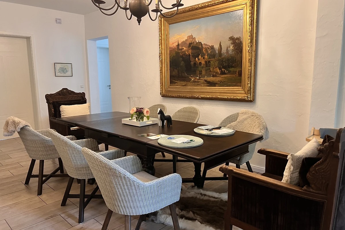 Viviamo con più generazioni in un ex casale/monastero, idillicamente circondato da prati e boschi, con 3 case, una casa seminari, una rimessa, scuderie e un vecchio forno a legna. Siamo felici di ogni nuovo ospite che possiamo accogliere qui nella nostra fattoria. L'affitto dell'appartamento per le vacanze è più un hobby per noi. Mia madre ha trasformato l'ex appartamento principale in una casa vacanze e l'ha completamente ristrutturata. Con molto amore per i dettagli ha arredato ogni stanza e combinato mobili antichi e moderni. Io stessa offro dal 2008 sul podere formazioni di coaching, coaching individuali e ritiri per più vitalità. Inoltre affitto la nostra casa seminari quando non la uso io stessa. Sul podere ci sono due cani, un gatto, due cavalli e due pony. Tutto è molto spazioso e ognuno trova qui un posto per rilassarsi nella natura e ricaricare nuove energie.
