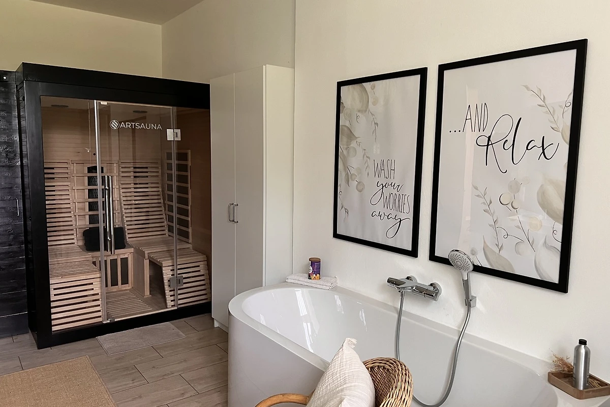 Incluso nel prezzo d'affitto: elettricità, sauna, accappatoi, asciugamani, biancheria da letto, lettino per bambini incluso biancheria da letto. L'appartamento dispone di un impianto di ventilazione con misurazione del CO2 e ventilazione automatica. Le finestre possono quindi rimanere chiuse. Tuttavia, avrete sempre aria esterna fresca e preriscaldata nell'appartamento. |