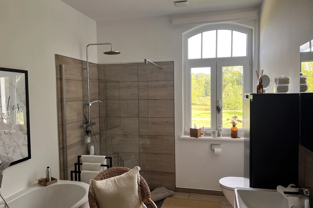 Scoprite la "Casa di campagna nella natura" a Osterholz-Scharmbeck, un perfetto rifugio per fino a 10 ospiti. Questa spaziosa casa vacanze di 144 m² offre una camera da letto e un bagno, ideale per famiglie o gruppi di amici. La cucina completamente attrezzata con lavastoviglie, bollitore e macchina da caffè invita a cucinare insieme, mentre l'accogliente zona salotto con camino e TV invita al relax. All’esterno vi aspetta un bellissimo giardino con terrazza e area barbecue, perfetto per serate conviviali. Una wallbox per auto elettriche è disponibile direttamente presso la casa, così potrete arrivare senza preoccupazioni. Per gli sportivi, la casa di campagna offre una sala fitness e, per il completo relax, è disponibile una sauna.