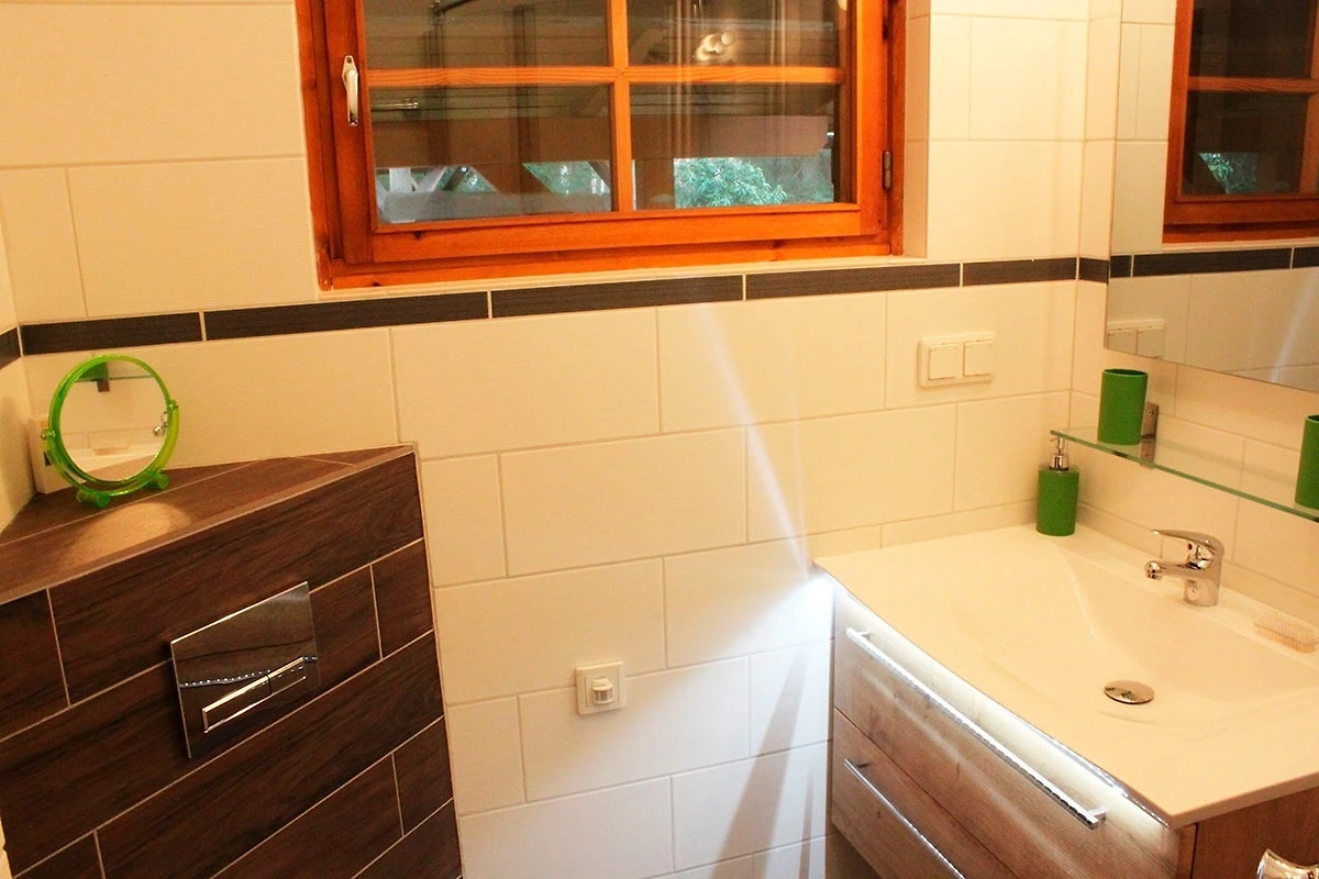 Ho avuto, come sperato, un meraviglioso periodo di tranquillità, solo con il mio cane. La piccola casetta è un vero paradiso di rifugio e sono sicuro che alla prossima occasione tornerò di nuovo a fare colazione sotto i bei pini e abeti nel giardino spazioso. Quando poi il sole sorge davvero e tutto dorme ancora, si ha l'impressione di essere nel mezzo di una foresta. Un sentito grazie anche per il contatto molto gentile e premuroso! Mi sono sentito molto informato e assistito fin dall'inizio della prenotazione. Ho trovato particolarmente utile il foglietto informativo allegato con i veterinari locali, nel caso ci fosse stato qualcosa con il mio amico a quattro zampe. Conclusione generale: TIP TOP e in ogni caso vale la pena di viaggiare!