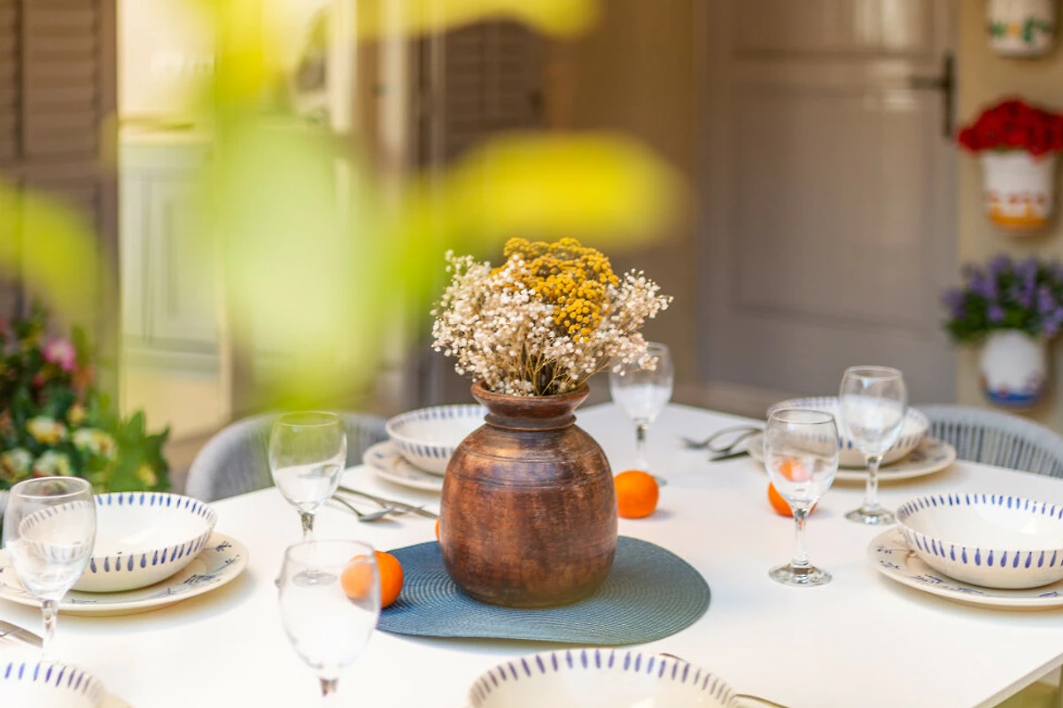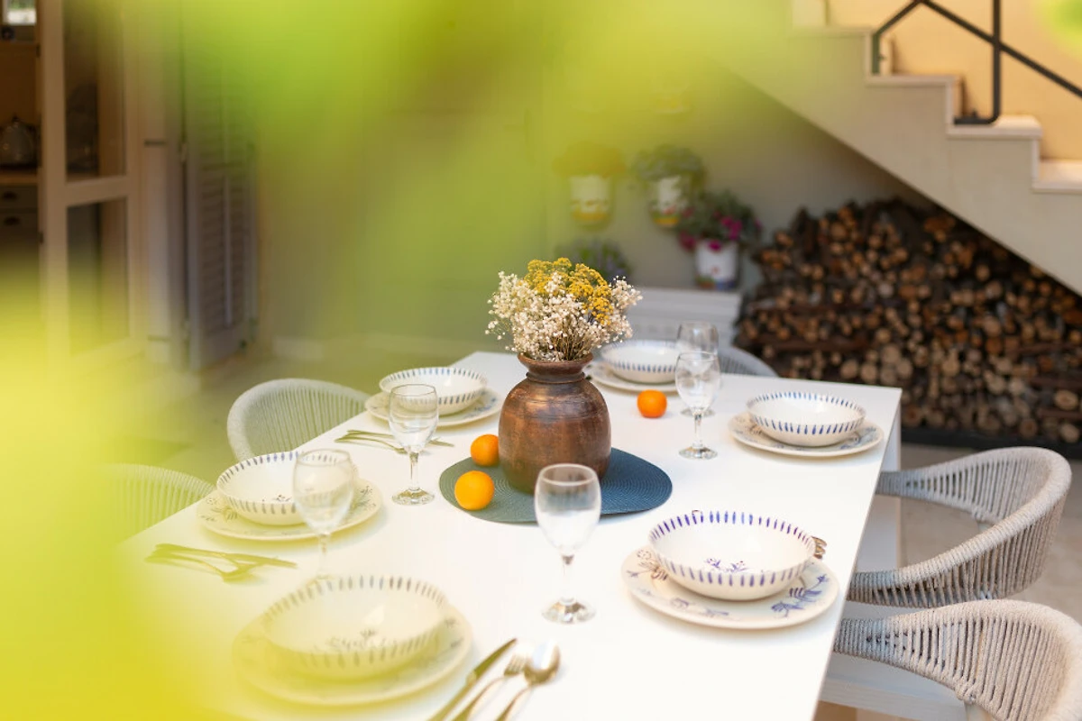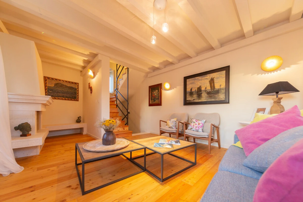 Comfort moderni includono WiFi gratuito, aria condizionata per il comfort estivo e un accogliente camino per le serate più fresche. È disponibile un posto auto privato esterno per un veicolo. Sebbene la proprietà non consenta animali domestici, offre un ambiente ideale per famiglie e coppie che cercano una tranquilla vacanza mediterranea.