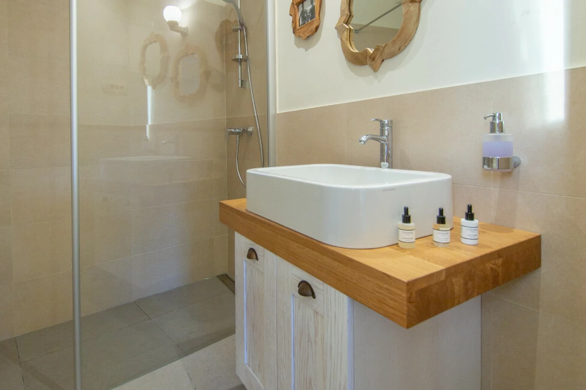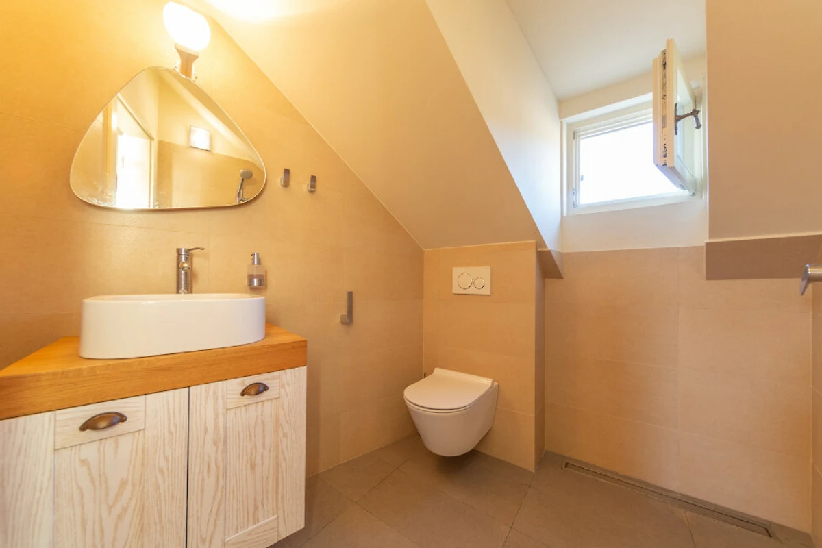 La villa accoglie comodamente fino a 6 ospiti in due camere da letto spaziose, ciascuna con letti king-size lussuosi. Due bagni ben attrezzati con moderne strutture doccia garantiscono comfort e convenienza per tutti gli ospiti. L'interno luminoso e arioso crea un'atmosfera accogliente perfetta per il relax.