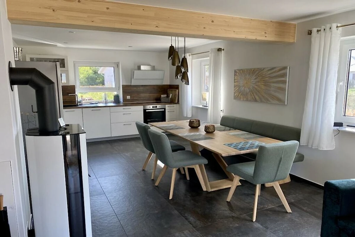 Costruita nel 2021, questa casa in legno per 6 persone è molto moderna e arredata in modo confortevole. Si trova in una posizione tranquilla, con vista sul Great Wariner Lake.