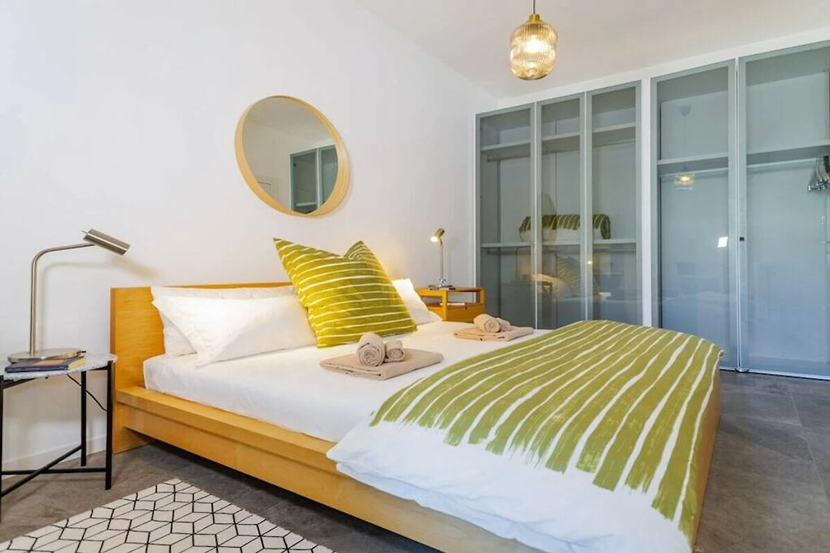 Raggiungibile tramite ascensore o scale, l'appartamento si apre su un corridoio che offre accesso diretto alle due camere da letto, al bagno e alla zona giorno. Le due camere da letto sono arredate rispettivamente con letti matrimoniali king-size (200x180) e queen-size (200x140), ampi armadi e una scrivania. Offrono accesso diretto all'ampio balcone esposto a sud-ovest, dotato di comode sedie a sdraio. Un divano letto di alta qualità (200x160) in soggiorno completa la sistemazione per un massimo di 6 persone.