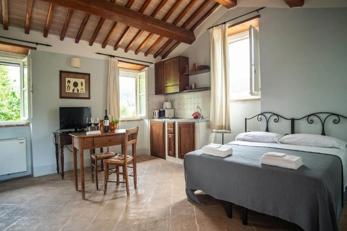 Sul prato, a pochi passi dal casolare, si trova la piscina con area verde attrezzata, mentre a disposizione ci sono barbecue, parcheggio e mountain bike per escursioni tra i sentieri francescani. La struttura offre anche esperienze enogastronomiche con ristorante, degustazioni di vino e olio DOP, corsi di cucina, servizio chef in villa e kit di benvenuto pet. L’azienda agraria interna produce vini e oli umbri di eccellenza, che arricchiscono l’autenticità del soggiorno. Tra relax, cultura e natura