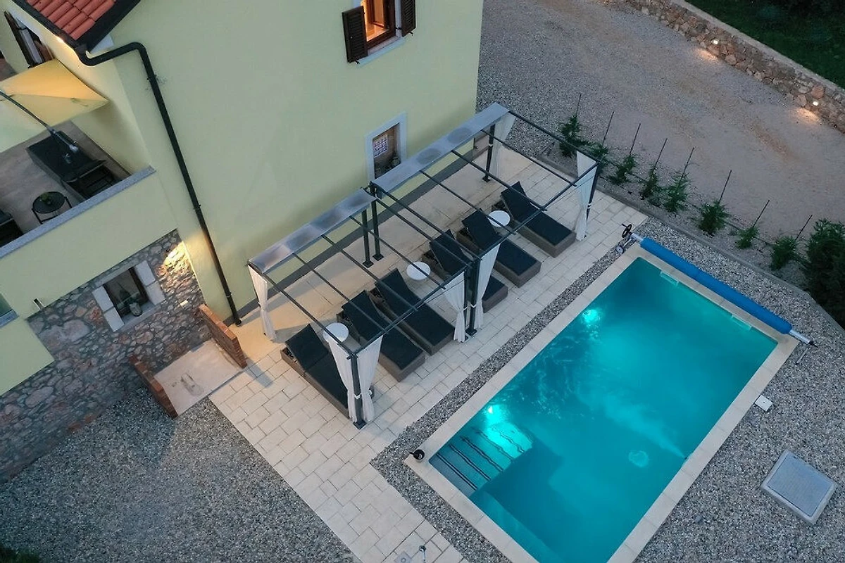 Scopri Villa Andrea, un incantevole rifugio a misura di famiglia immerso nel paesaggio rurale tranquillo di Risika sull'isola bellissima di Krk. Questa spaziosa villa di 180 m² offre una fuga perfetta per famiglie e coppie che cercano comfort e relax.