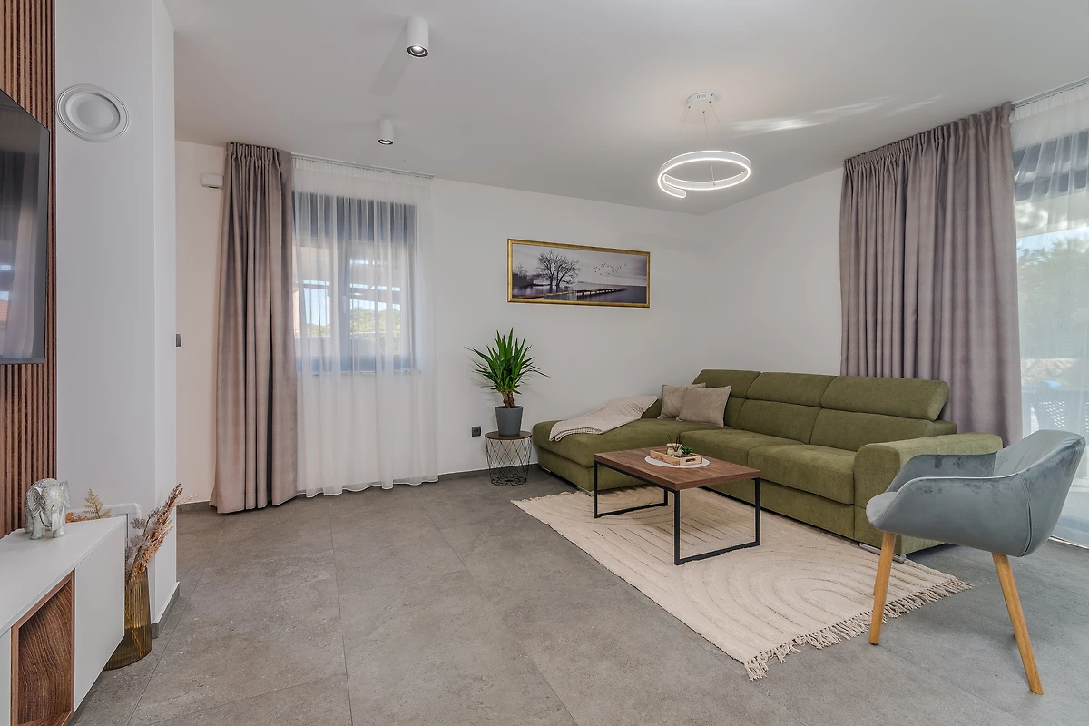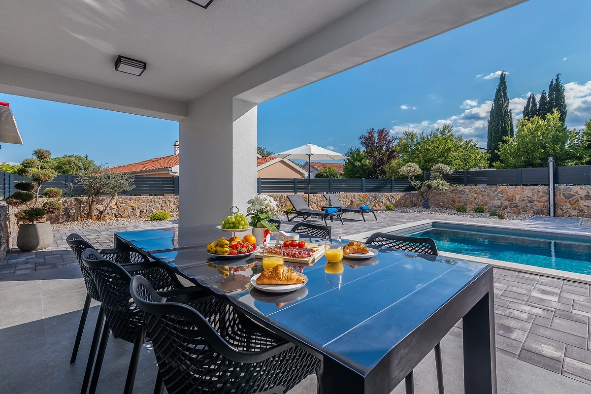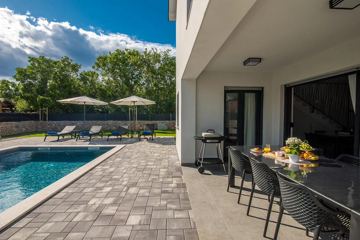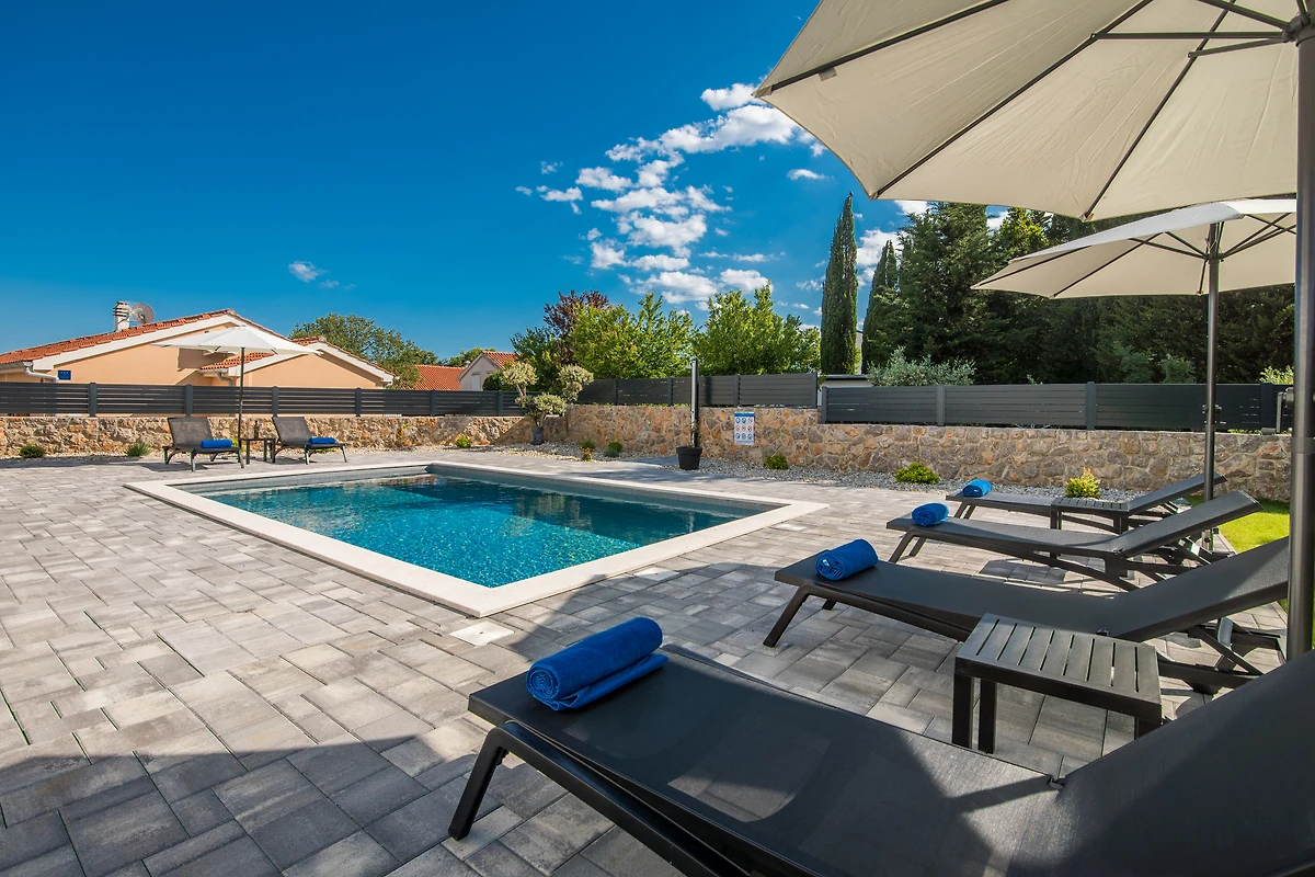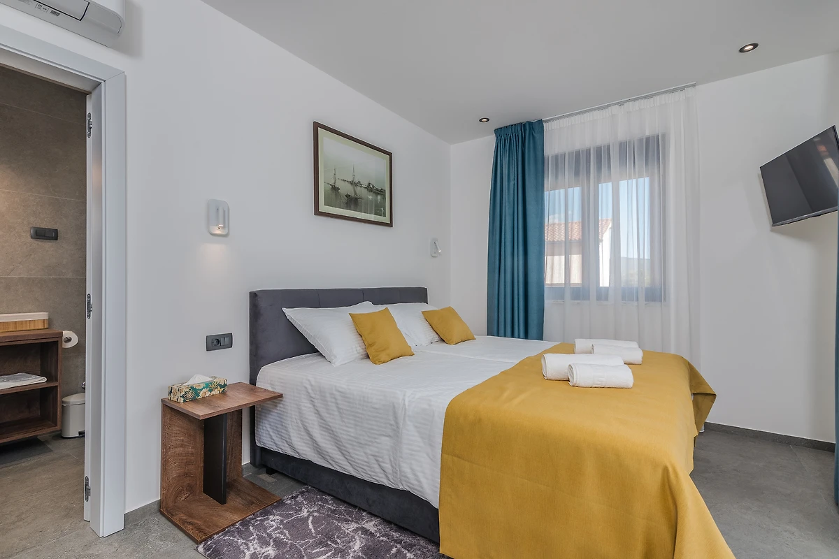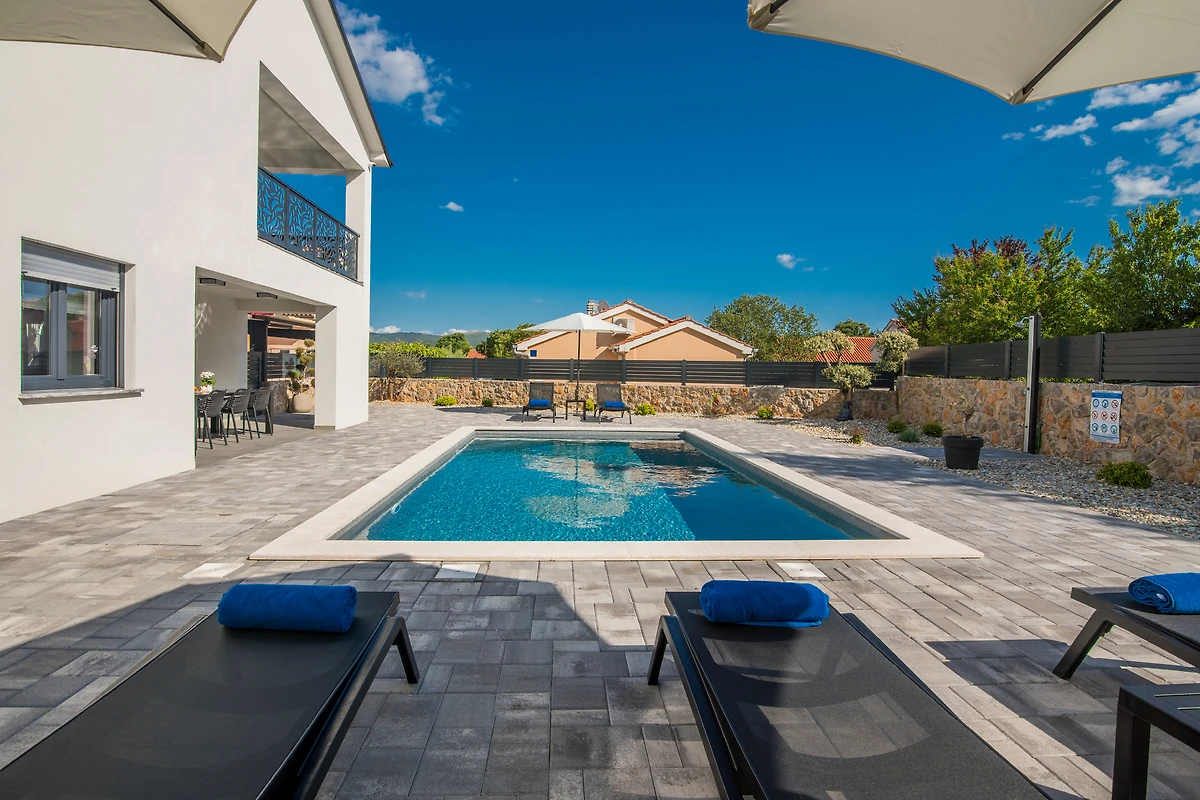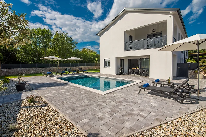 La villa si trova nel tranquillo paese di Kornić, a pochi minuti a piedi dalla popolare spiaggia Dunat – ideale per gli amanti del mare e del sole.