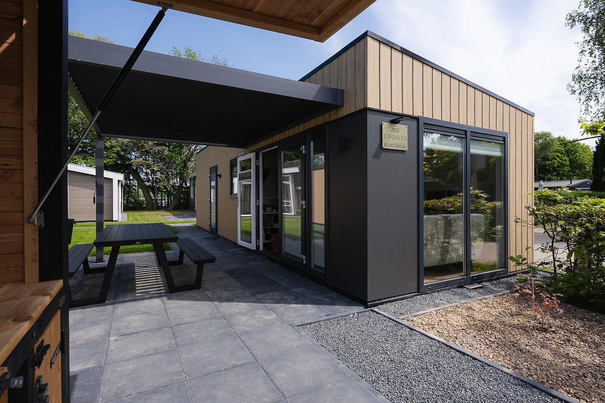 Da Lodges van Rongen puoi affittare non solo una lodge, ma anche tutte e tre insieme. Ideale per grandi famiglie, amici o più famiglie. Così potete godervi la compagnia insieme, ma ognuno ha comunque il lusso di una propria lodge e privacy. Con il grande campo da gioco e il parco giochi davanti alla porta e le cucine esterne per lunghe serate estive, il vostro soggiorno sarà una grande festa.