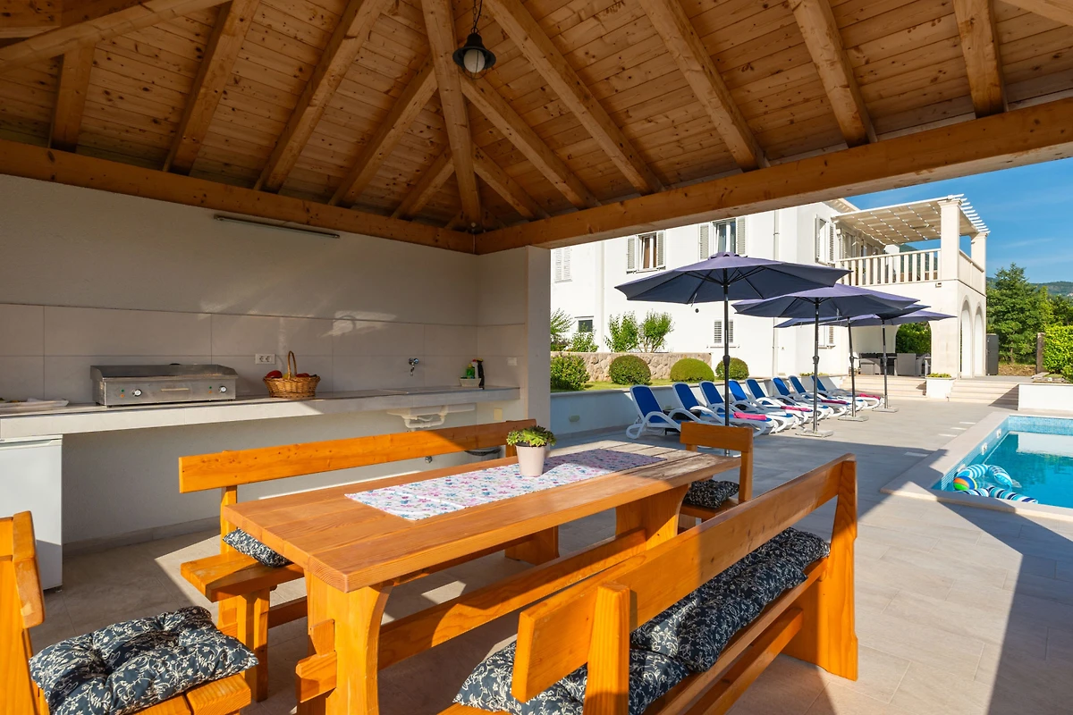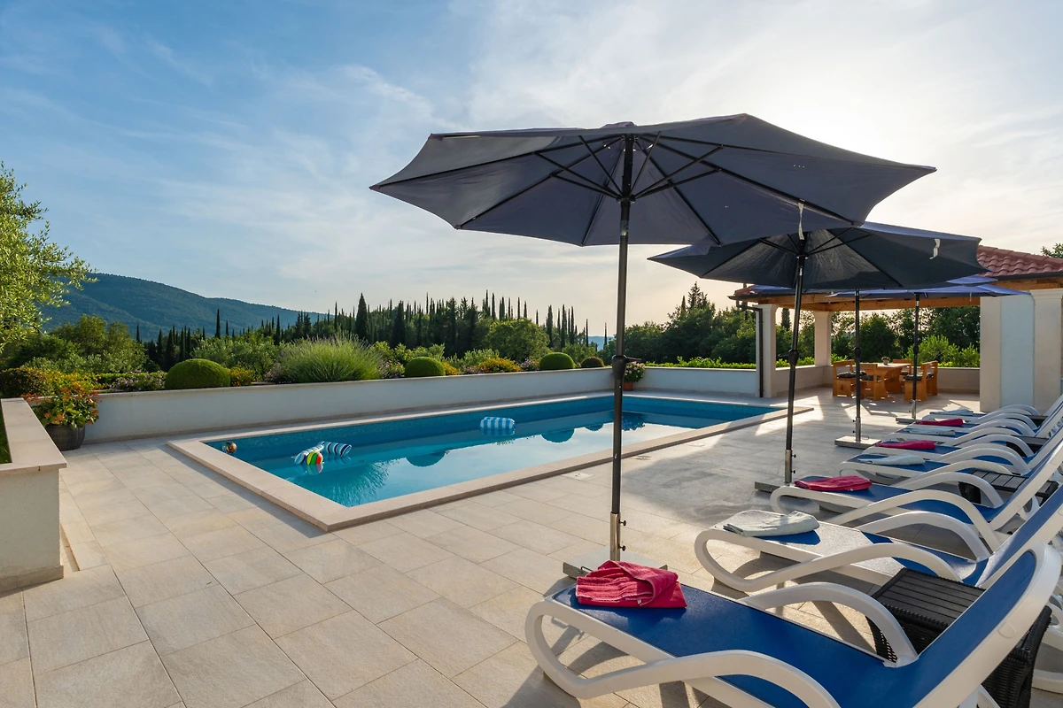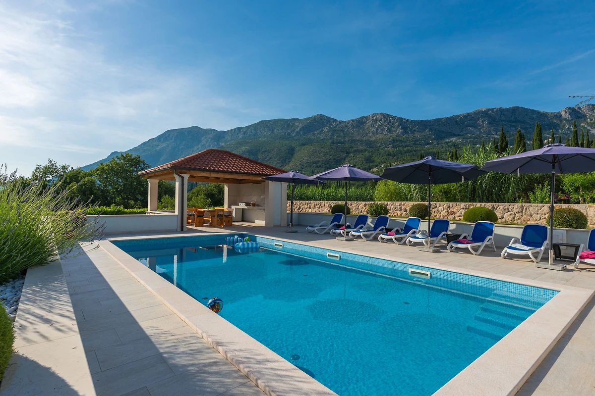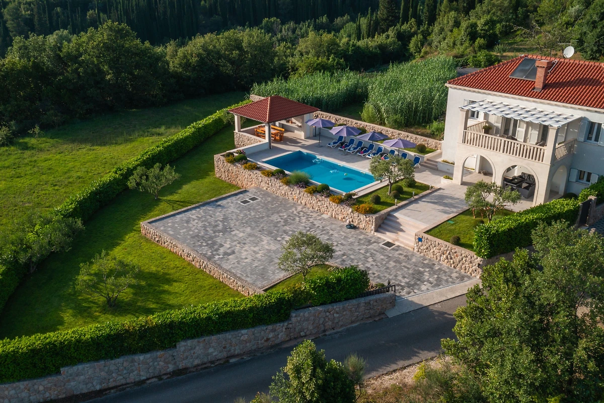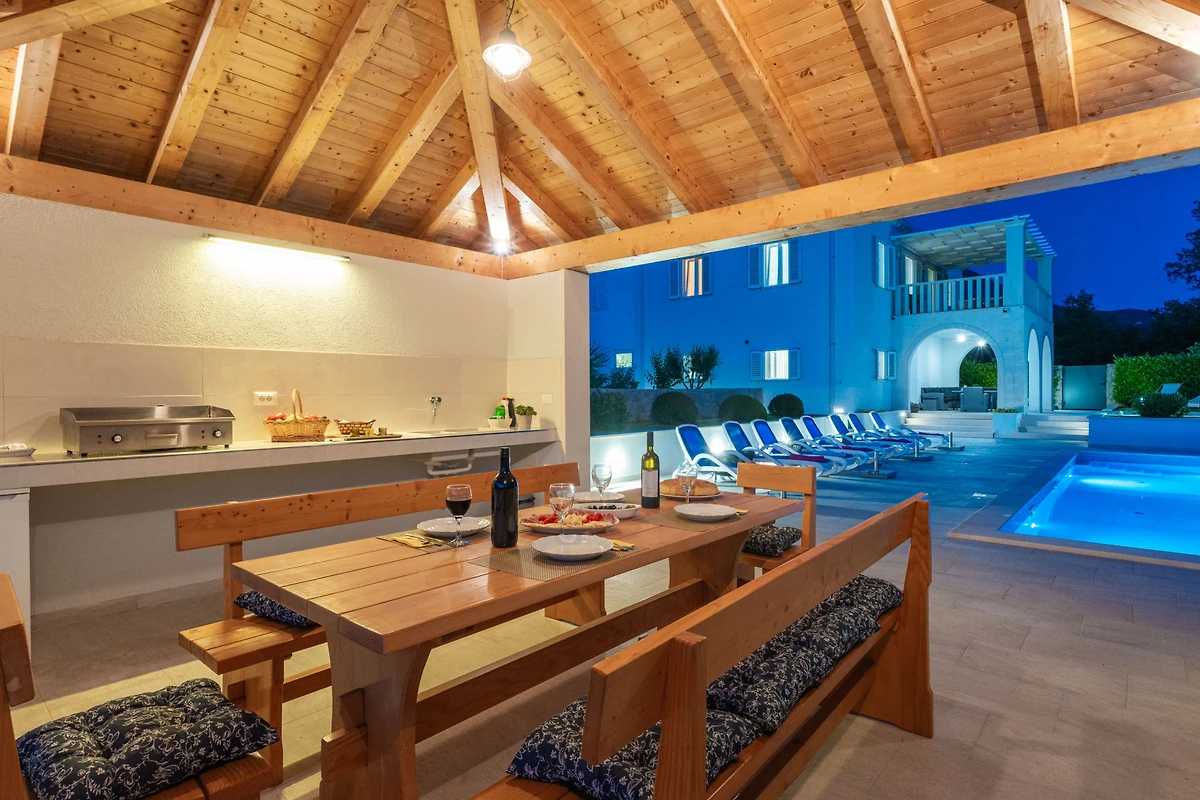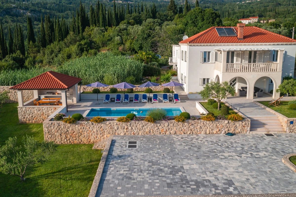 Scopri Cypress Paradise, una splendida villa di 5 camere da letto situata nell'incantevole zona di Dubravka, perfetta per famiglie e gruppi che cercano un indimenticabile soggiorno in Croazia. Questa spaziosa proprietà di 150 metri quadrati si trova su un vasto terreno di 17.000 metri quadrati, offrendo privacy e tranquillità.