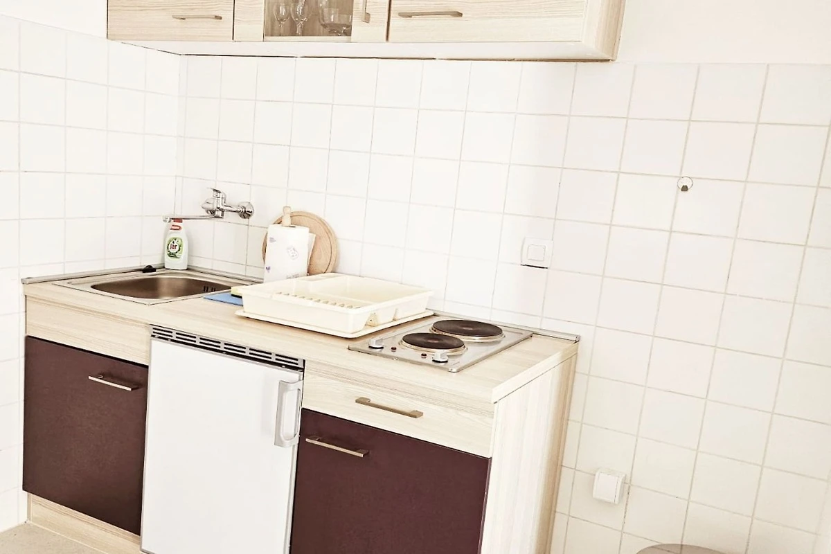 This studio apartment can accommodate up to two guests. It features an SAT/internet-enabled TV and is combined with a sofa and a Kitchen. The private bathroom is equipped with a shower and toilet.