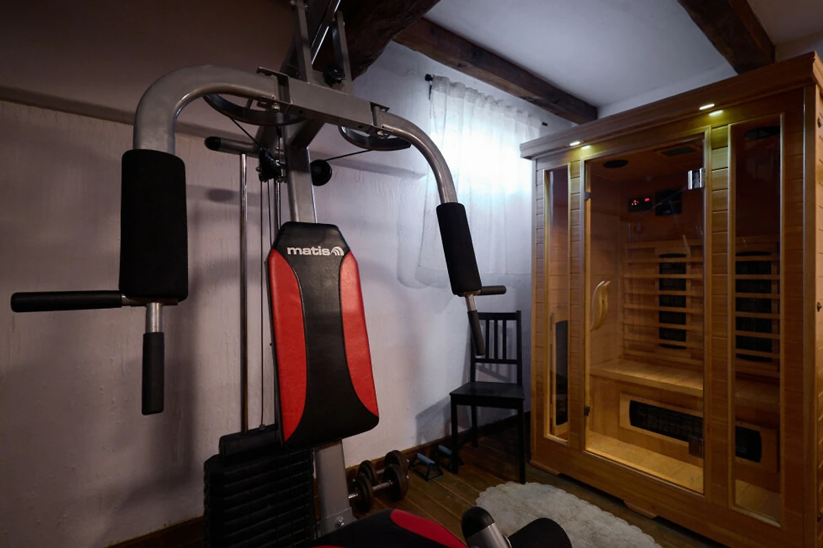 Gli appassionati di attività all'aperto ameranno le caratteristiche private, tra cui una piscina da 3x3 metri, un giardino e una terrazza. L'appezzamento recintato di 500 m² offre un'area barbecue e mobili da giardino, perfetti per pranzi all'aperto e relax. Tra gli altri servizi sono inclusi una palestra, una sauna, una spa e una vasca idromassaggio per un relax totale.