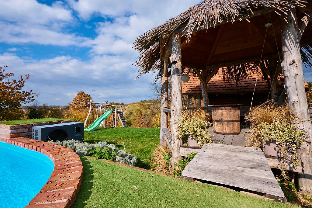 Gli appassionati di attività all'aperto ameranno la piscina privata riscaldata da 4x8 metri, perfetta per giorni estivi di relax. L'ampio appezzamento di 1200 m² presenta un bellissimo giardino, mobili da giardino, un'area barbecue e un perimetro recintato che garantisce privacy e sicurezza.