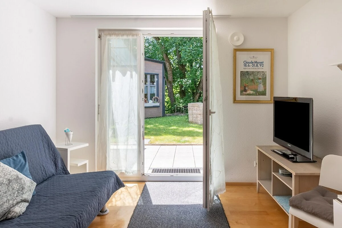 Questo accogliente appartamento indipendente è il rifugio perfetto per due persone ed è ideale per una fuga di coppia o per un tranquillo rifugio per chi viaggia da solo. Con i suoi 36 m², offre tutto il necessario per un soggiorno confortevole. Al primo piano si trova un'accogliente zona soggiorno/pranzo con divano letto, TV e impianto stereo: un luogo meraviglioso per rilassarsi dopo una giornata di attività. L'angolo cottura adiacente è completamente attrezzato con macchina per il caffè, forno, microonde, lavastoviglie e tutto il necessario per preparare i pasti in casa.