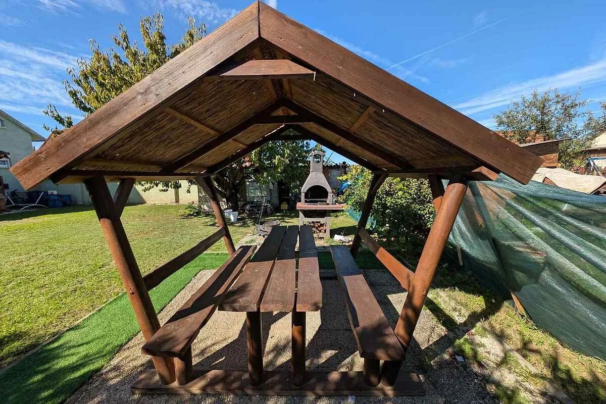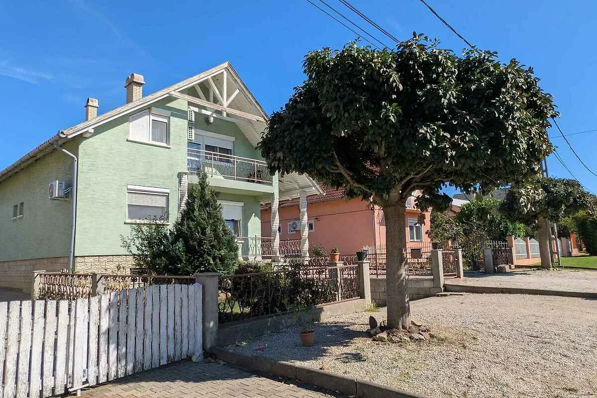 Balatonszárszó. L' appartamento vacanze si trova in una proprietá chiuso, grande 500 mq con prato e alberi. Il padrone di casa vive stabilmente nella casa, ma usa un ingresso separato. L'accesso avviene vicino a una strada secondaria (asfaltata). Parcheggio (per 2 auto) sulla proprietà.