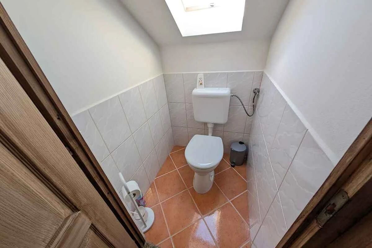 L'ingresso del vostro appartamento si trova nell'attico e conduce sopra una scala interna direttamente nella cucina abitabile. Cucina soggiorno con angolo di seduta, TV e zona pranzo (6 posti). Tutte le finestre e le porte esterne sono protette da zanzariere. Camera da letto con 1 letto matrimoniale. Camera da letto con 1 letto matrimoniale. Tutte le finestre e le porte esterne sono protette da zanzariere. Camera da letto con 1 letto matrimoniale e 1 culla. Cucina (camera di passaggio) con zona pranzo, fornello elettrico (piano cottura ceran, 4 fornelli), frigorifero (scomparto del ghiaccio), microonde, caffettiera, tostapane e bollitore elettrico. Tutte le finestre e le porte esterne sono protette da zanzariere. Bagno con vasca da bagno, doccia, 1 lavandino, asciugacapelli e finestra. WC separato con WC e finestra.