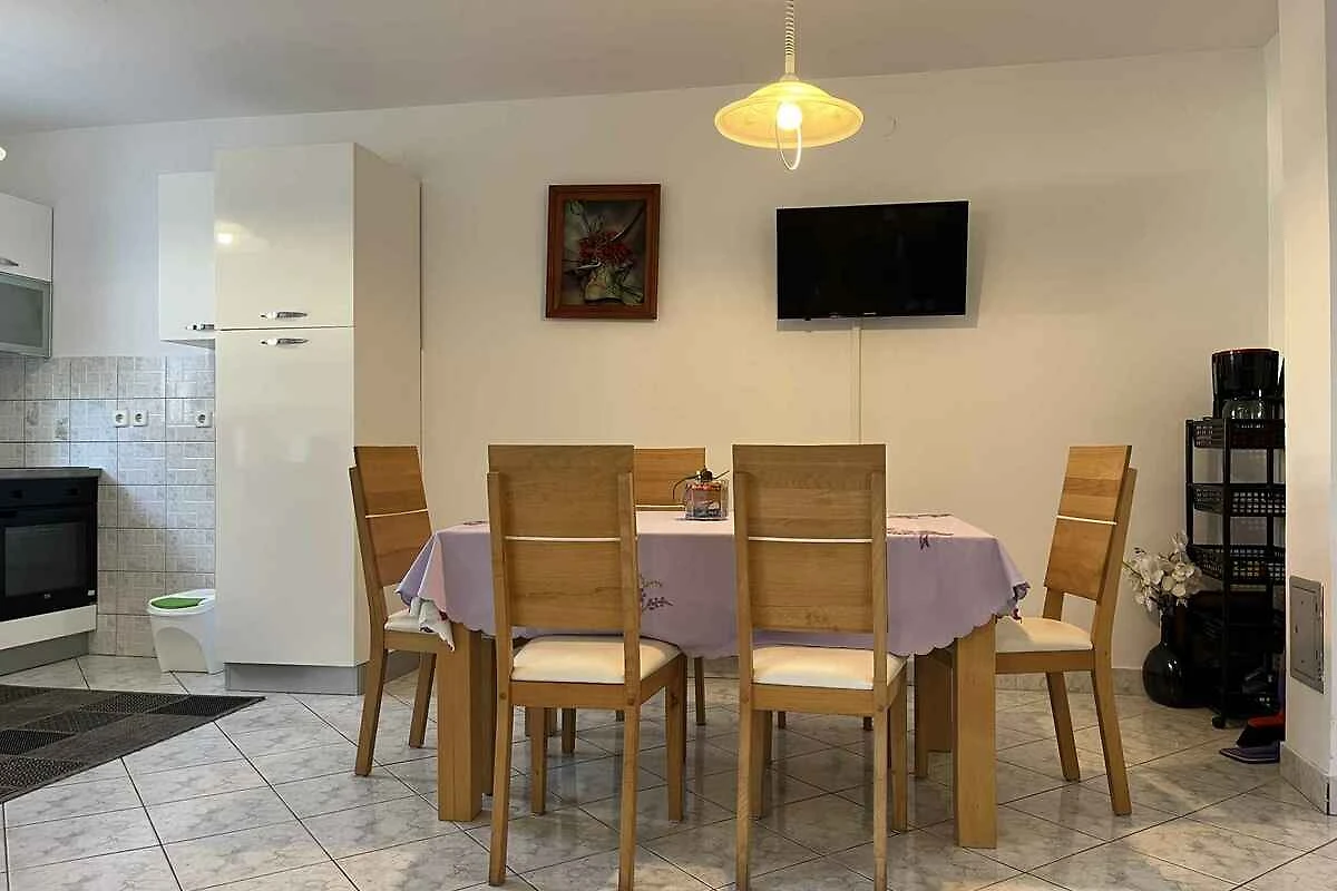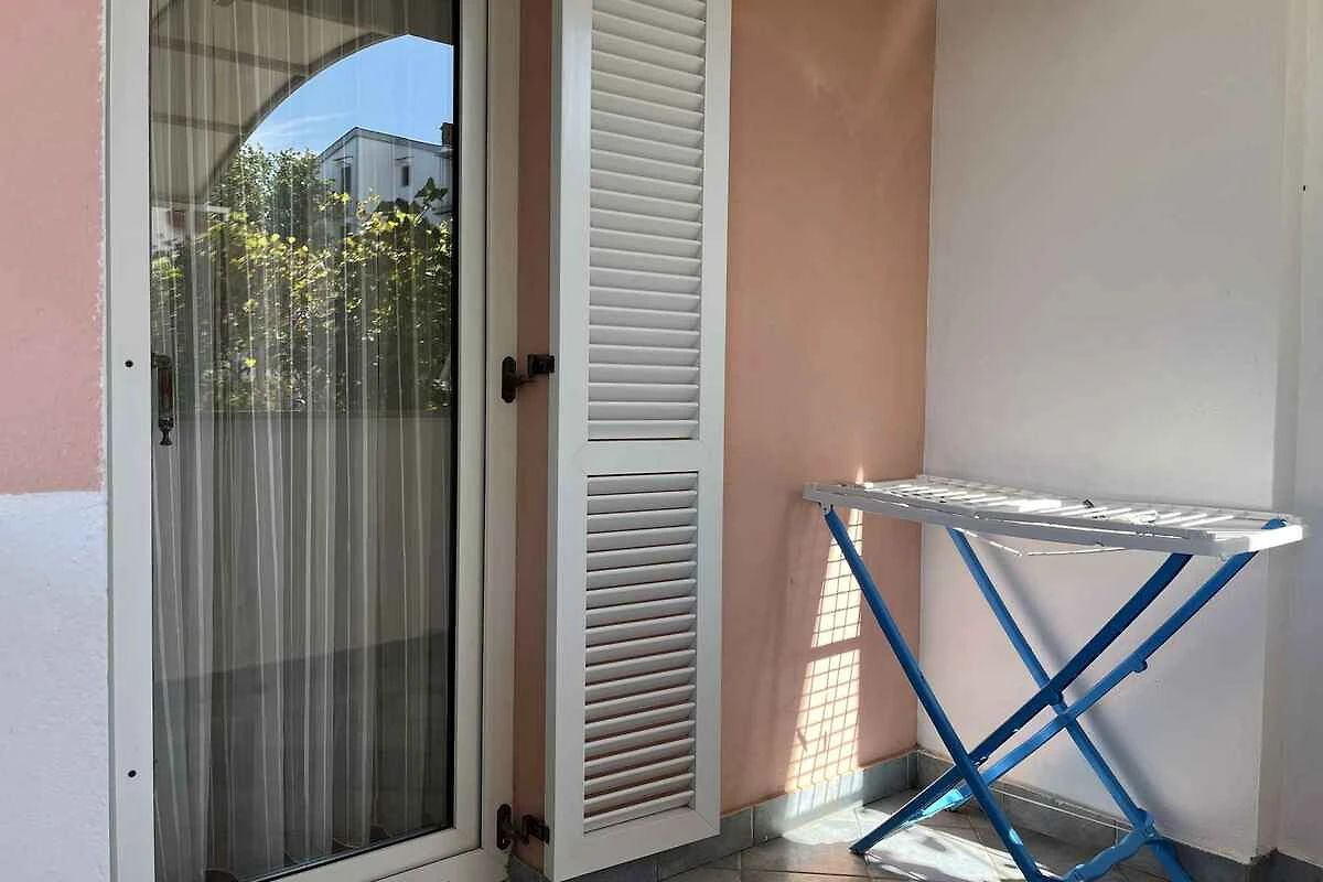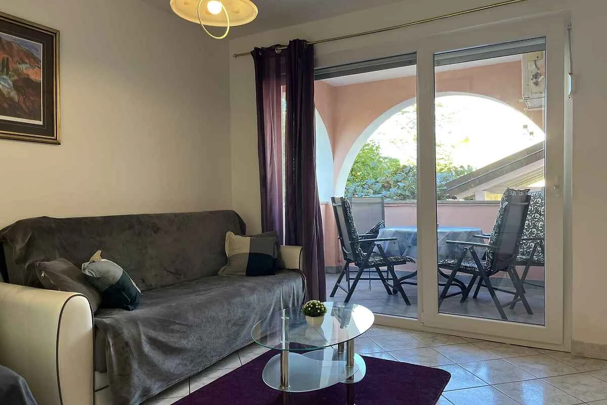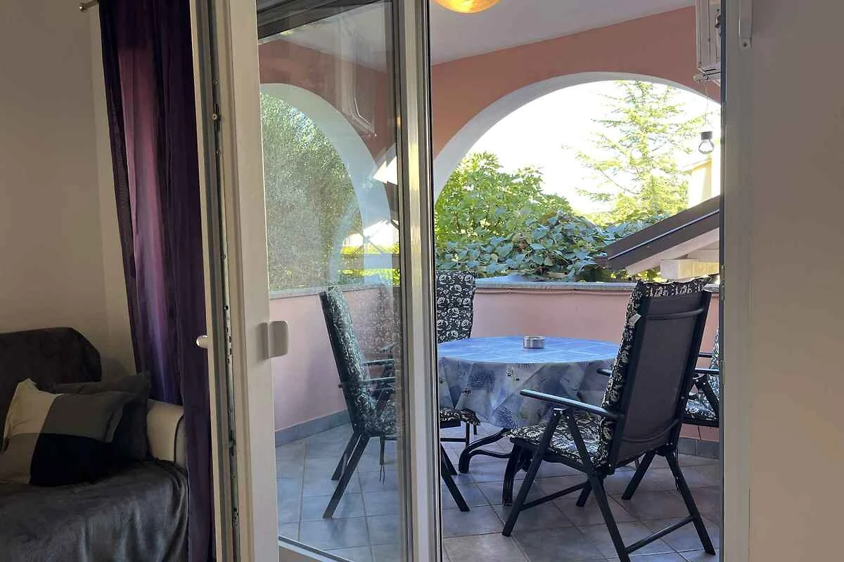 Malinska. L' appartamento vacanze si trova in una proprietá aperta, grande 50 mq con fiori e arbusti. Il padrone di casa vive stabilmente nella casa, ma usa un ingresso separato. L'accesso avviene vicino a una strada secondaria (asfaltata). Parcheggio (per 1 auto) in posto auto coperto.