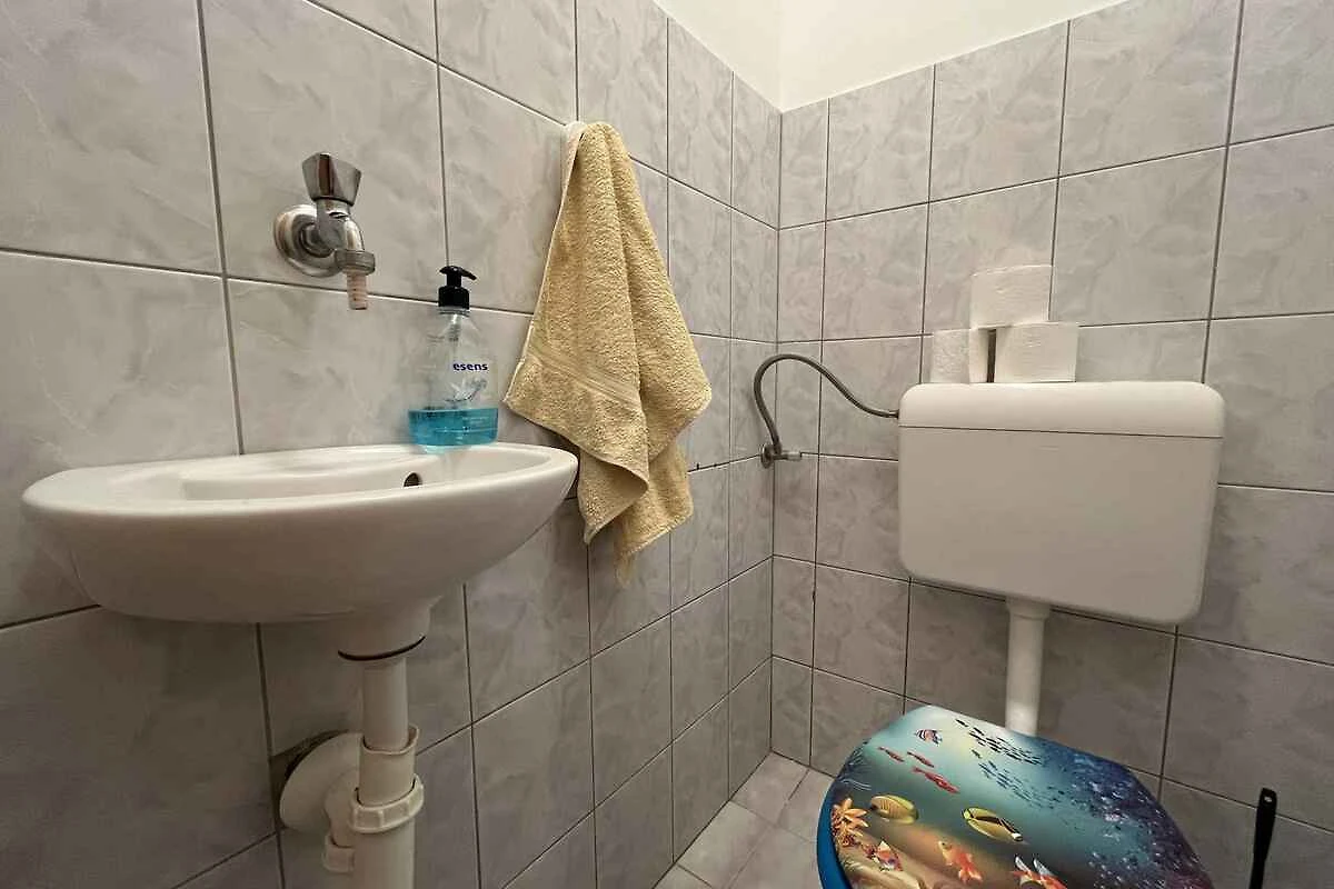L'ingresso del vostro appartamento si trova im Erdgeschoss e conduce sopra una scala esterna direttamente nel corridoio. Soggiorno (18 mq) con angolo di seduta, TV, zona pranzo (4 posti) e accesso al balcone. Camera da letto (12 mq) con 1 letto matrimoniale (Kingsize). Camera da letto (12 mq) con 1 letto matrimoniale (Kingsize) e accesso alla terrazza. Cucina (10 mq) con fornello elettrico (2 fornelli), forno, lavastoviglie, frigorifero (scomparto del ghiaccio), microonde, caffettiera, tostapane, bollitore elettrico e accesso al balcone. Bagno (7 mq) con lavatrice, doccia, 1 lavandino, WC e finestra. WC separato (5 mq) con 1 lavandino e WC.