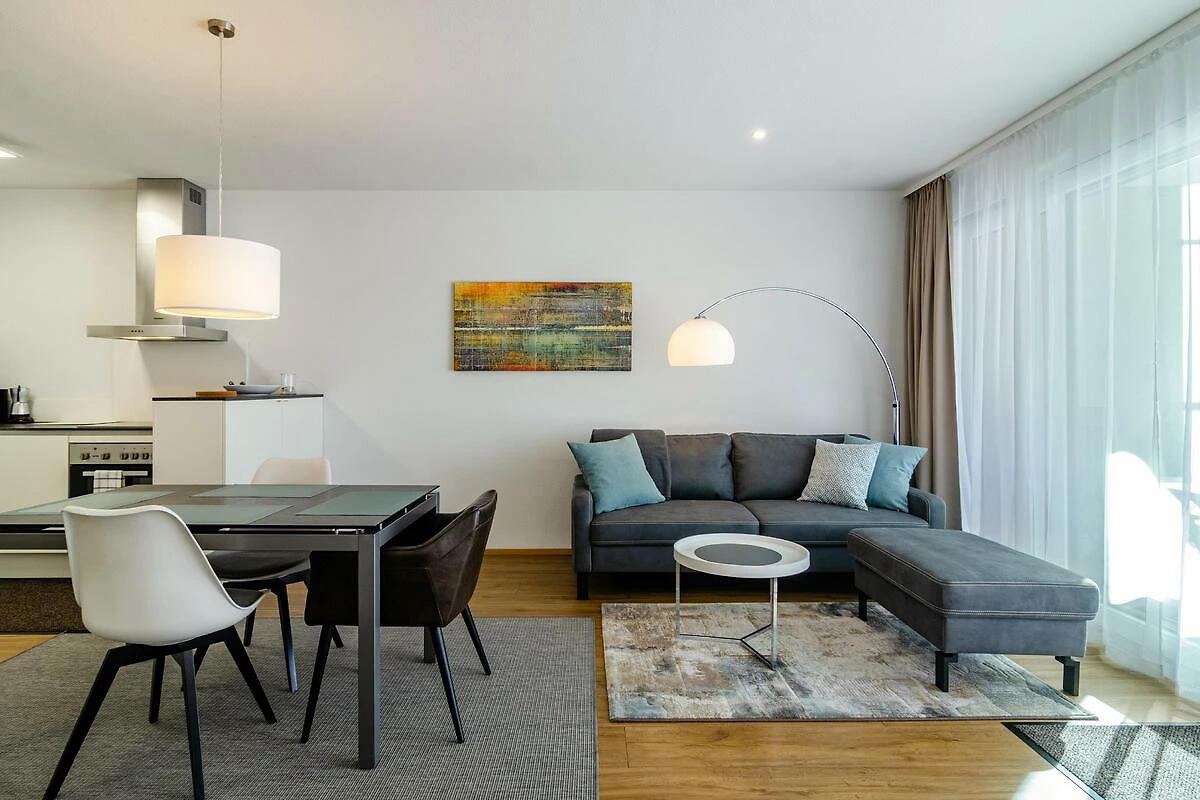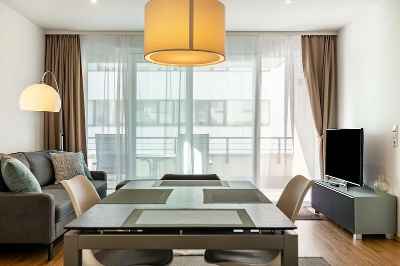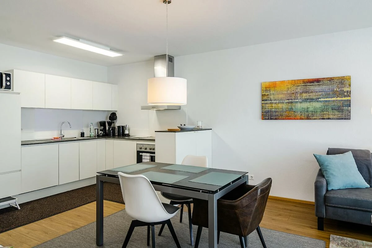 Il vostro appartamento per le vacanze a Überlingen sul Lago di Costanza. Il bilocale e mezzo City-Apartment ALEX F****/DTV di 58 m² al 1° piano di un moderno complesso residenziale è completamente attrezzato. Ampio balcone/terrazza esposto a sud, ascensore, garage sotterraneo, deposito biciclette e Wi-Fi gratuito naturalmente disponibili. Ideale per due persone e 1 bambino in lettino o nel letto dei genitori.