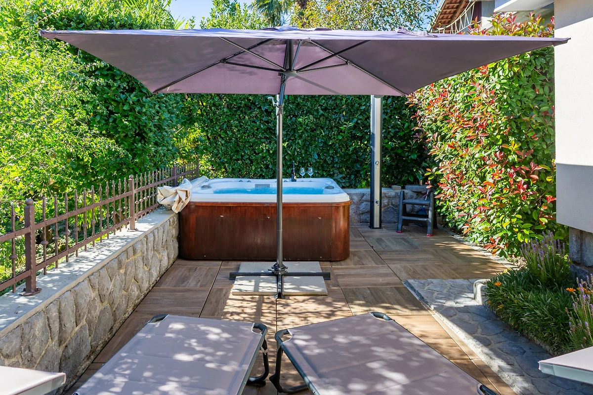 Goditi il comfort del condizionatore durante le giornate calde e rilassati nella jacuzzi privata dopo una giornata di esplorazione. La proprietà vanta un bellissimo giardino con mobili da giardino e un barbecue, ideale per pranzi e relax all'aperto. Una terrazza privata offre un punto perfetto per rilassarsi e godersi la vista circostante.