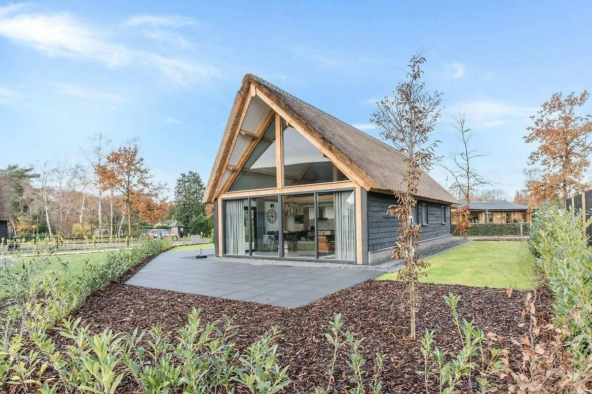 Immerso nel tranquillo Parc de Kievit a Baarle-Nassau, vicino al confine tra Olanda e Belgio, questo lussuoso bungalow con tetto in paglia