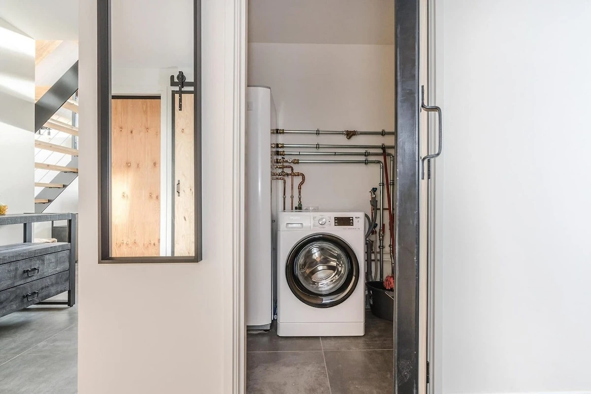 Al piano terra, due tranquille camere da letto e un moderno bagno con doccia e vasca offrono un sonno ristoratore. Al piano superiore, un'accogliente suite padronale con bagno privato aggiunge un tocco di privacy in più. Troverete anche una lavanderia con lavatrice e asciugatrice, oltre a una caldaia a pompa di calore sostenibile che garantisce un soggiorno ecosostenibile. Uscite sull'ampia terrazza con vista su un tranquillo laghetto, il luogo perfetto per sorseggiare il caffè del mattino o rilassarsi sotto le stelle. Con un parcheggio privato per due auto e ogni comfort a portata di mano, questo affascinante rifugio unisce lusso, natura e calore familiare in un soggiorno indimenticabile.