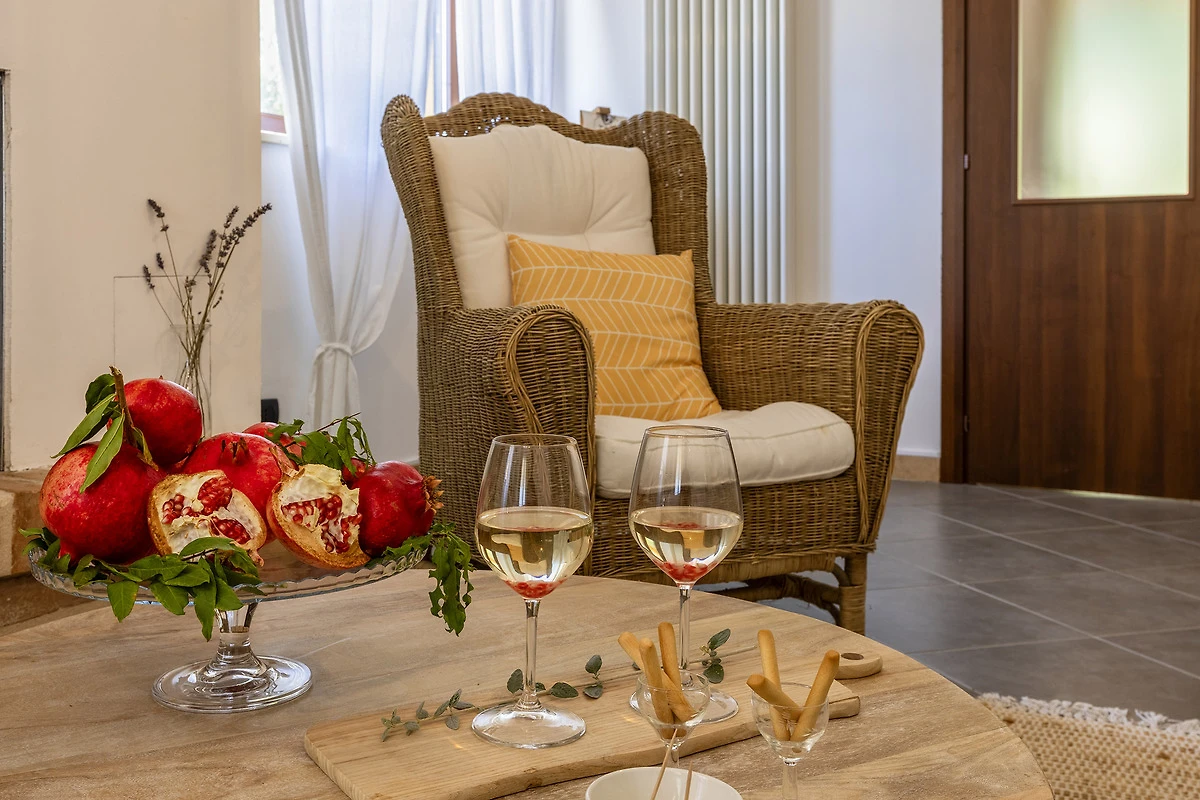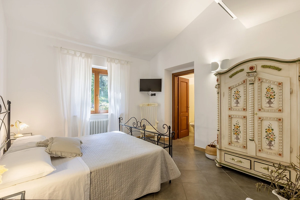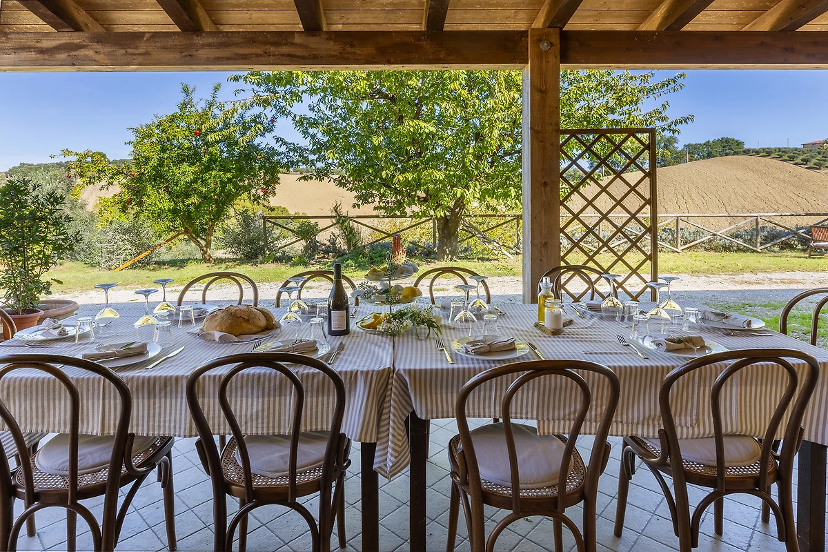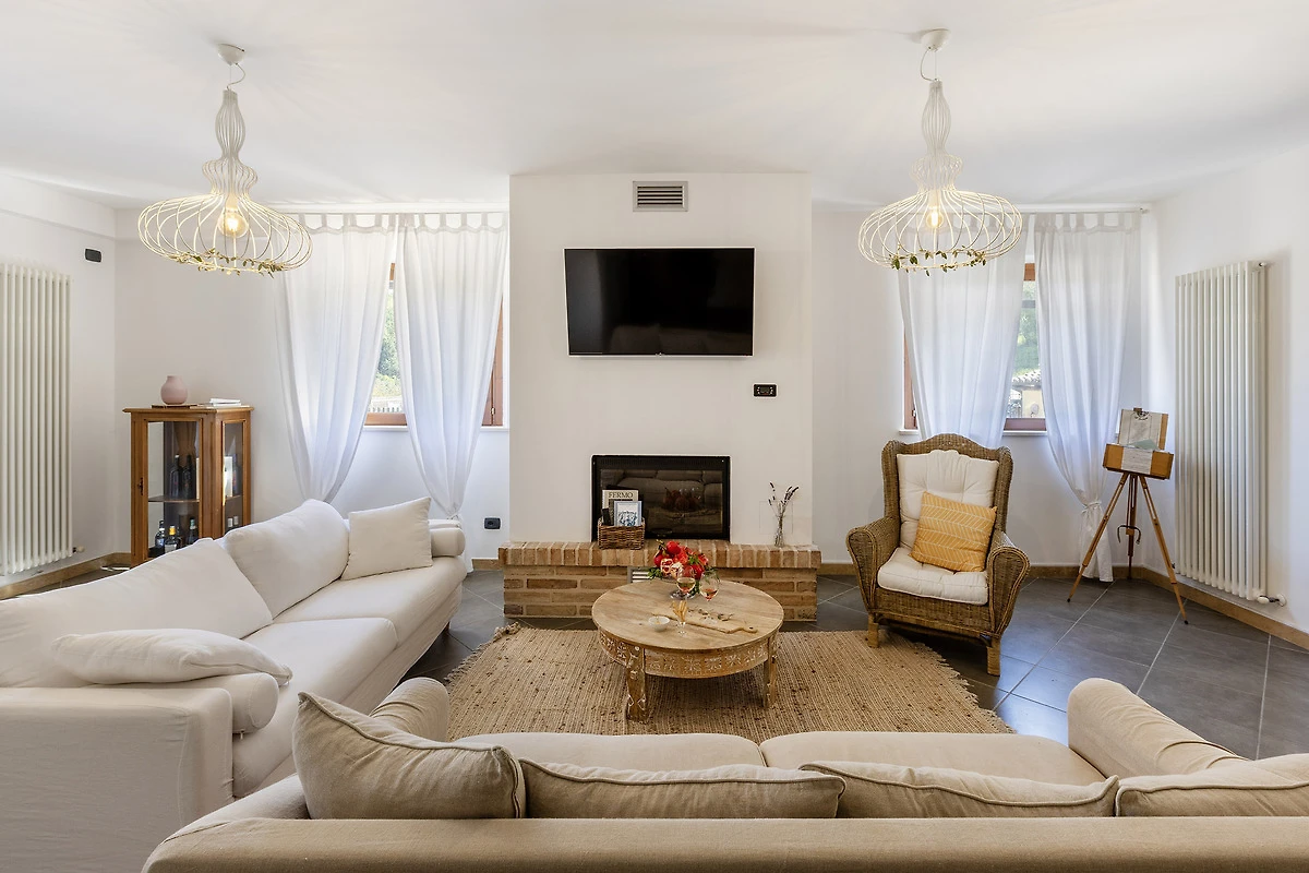Nel cuore delle verdi colline delle Marche, Villa Collevento si distingue per la sua vista incantevole, l'arredamento elegante in stile classico e gli ampi spazi interni. Disposta su due piani collegati da una scala interna, la villa può ospitare fino a 11 persone in un ambiente privato e tranquillo. Il piano terra è composto da: