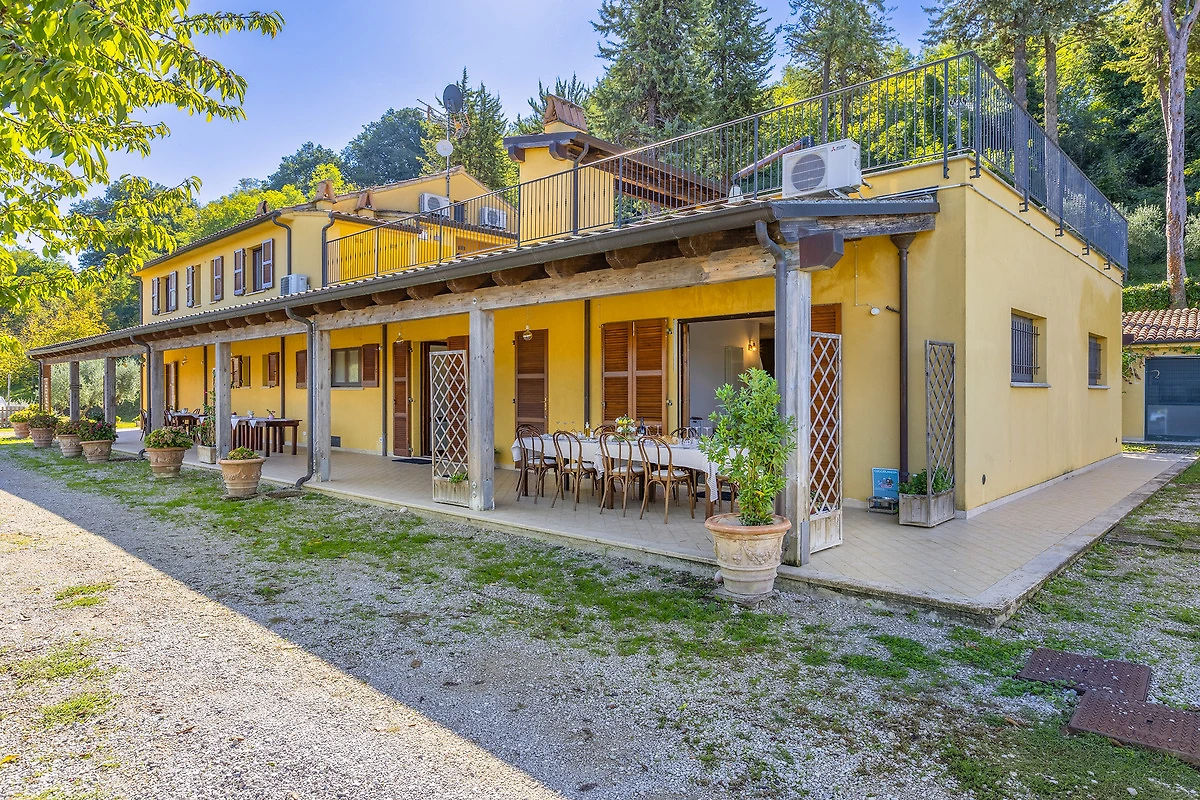 Sotto l’altro portico si trova l’ingresso principale e la zona barbecue attrezzata con un barbecue in muratura si trova nelle vicinanze.