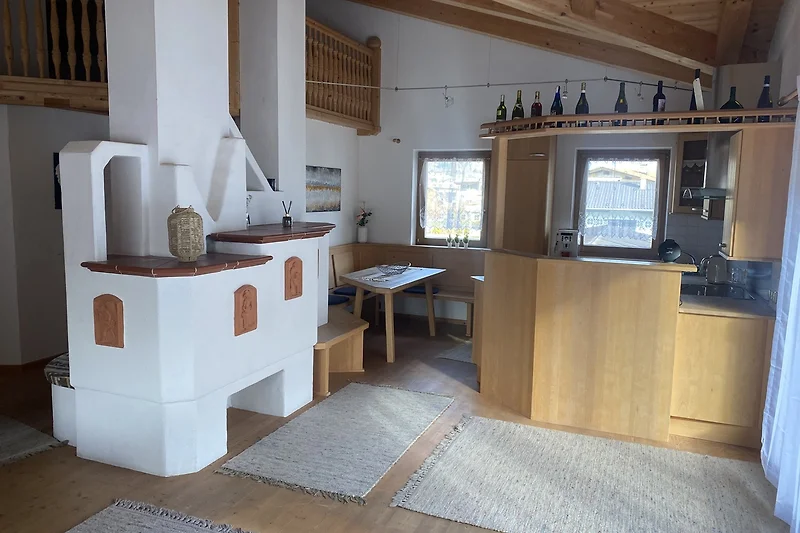 Benvenuti nell’appartamento per le vacanze nel cuore del Tirolo – il vostro perfetto rifugio per giornate indimenticabili a Buch in Tirol! Su una generosa superficie di 96 m², fino a 5 ospiti trovano ampio spazio per rilassarsi e godersi l’ambiente alpino. Due camere da letto confortevoli garantiscono notti riposanti, mentre il bagno con vasca e asciugacapelli è pronto per offrirvi un piacevole inizio di giornata. La cucina completamente attrezzata non lascia nulla a desiderare: con una moderna cucina componibile, lavastoviglie, macchina da caffè, bollitore e ampi piani di lavoro, cucinare insieme è un piacere. Lenzuola fresche sono naturalmente disponibili – così vi sentirete a casa fin dal primo momento. Il calore dei pavimenti in legno e i materiali naturali di alta qualità creano un’atmosfera particolarmente accogliente. L'appartamento è riservato esclusivament ai non fumatori e offre un ambiente adatto agli allergici – così potrete godervi il vostro soggiorno senza preoccupazioni. Anche un soggiorno prolungato è possibile, ideale per gli ospiti che desiderano vivere il Tirolo con tutta calma.
