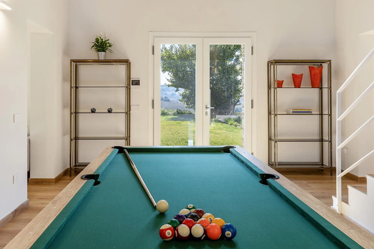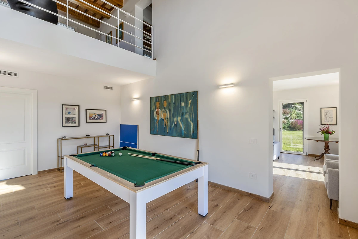 - una sala biliardo con scala interna che conduce al primo piano e accesso diretto al giardino;