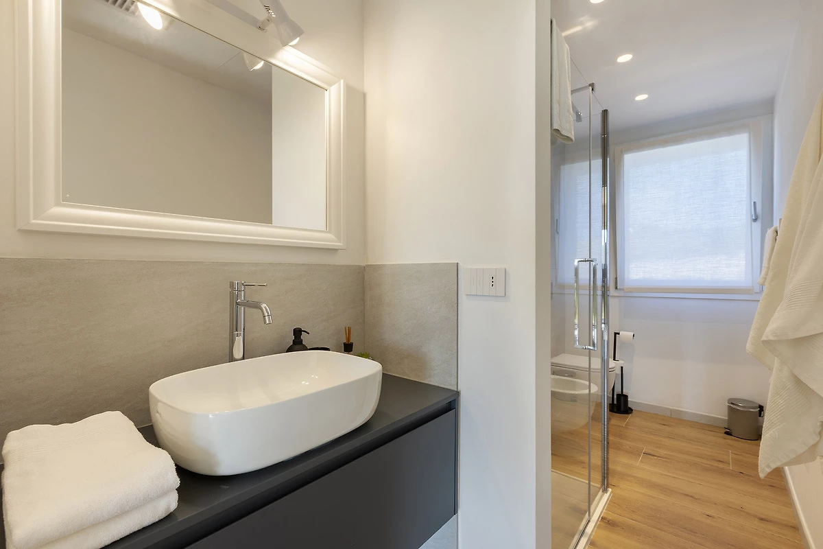 - una grande camera doppia con bagno privato con doccia e vasca;