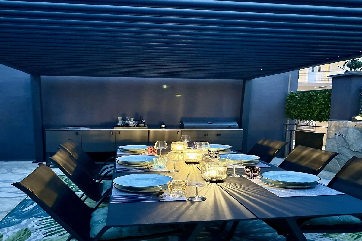 , Accesso internet, Parcheggio, Giardino, Mobili da giardino, asciugabiancheria, lavatrice, patio, aria condizionata, terrazza(50 m2), giardino(recintato), barbecue, parcheggio, asciugacapelli, , Cleaning products, Extra pillows and blankets