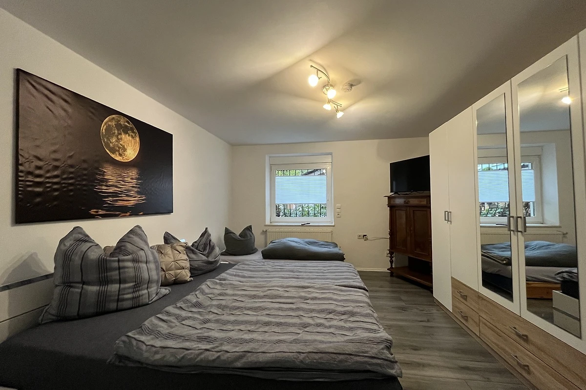 Benvenuti nell'appartamento per le vacanze Fewo126 a Chemnitz – la vostra casa temporanea per fino a cinque ospiti! Su spaziosi 70 m² vi aspettano due camere da letto, dotate di biancheria da letto di alta qualità e letti confortevoli, che vi garantiranno notti riposanti. L'area soggiorno luminosa invita a rilassarsi con un divano e una televisione. Nei giorni più freschi, il camino offre un piacevole calore e un'atmosfera speciale. La cucina a vista è ottimamente attrezzata: sono a vostra disposizione un angolo cottura, una lavastoviglie, un forno a microonde, un bollitore e una macchina da caffè – così godrete di flessibilità a tutti i pasti. Il moderno bagno dispone di una doccia, un asciugacapelli e molto spazio per riporre gli oggetti. Un parcheggio privato direttamente presso la casa vi risparmia la fastidiosa ricerca di un posto auto. L’appartamento è riservato ai non fumatori e si adatta perfettamente anche per soggiorni di lunga durata. Per il vostro benessere provvedono inoltre dettagli scelti con cura, come eleganti pavimenti in legno, un’ampia zona salotto e un’area esterna curata con vista sul giardino. Scoprite Chemnitz e godetevi giorni rilassanti in una sistemazione che unisce comfort e funzionalità.