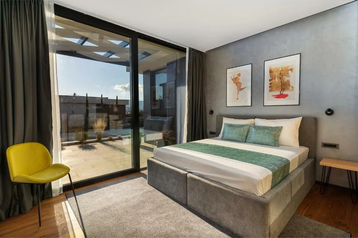 La villa dispone di quattro spaziose camere da letto, ognuna con il proprio fascino unico e accesso alla terrazza. Tutte le camere sono dotate di comodi letti matrimoniali, armadi, televisori e uscite private sul giardino o sulla terrazza, così da potersi svegliare con vista sulla natura e l’aria fresca del mare. Due camere da letto dispongono di un proprio moderno bagno privato, che offre ulteriore privacy e comfort. Le altre due camere da letto condividono un terzo bagno, situato nel corridoio.