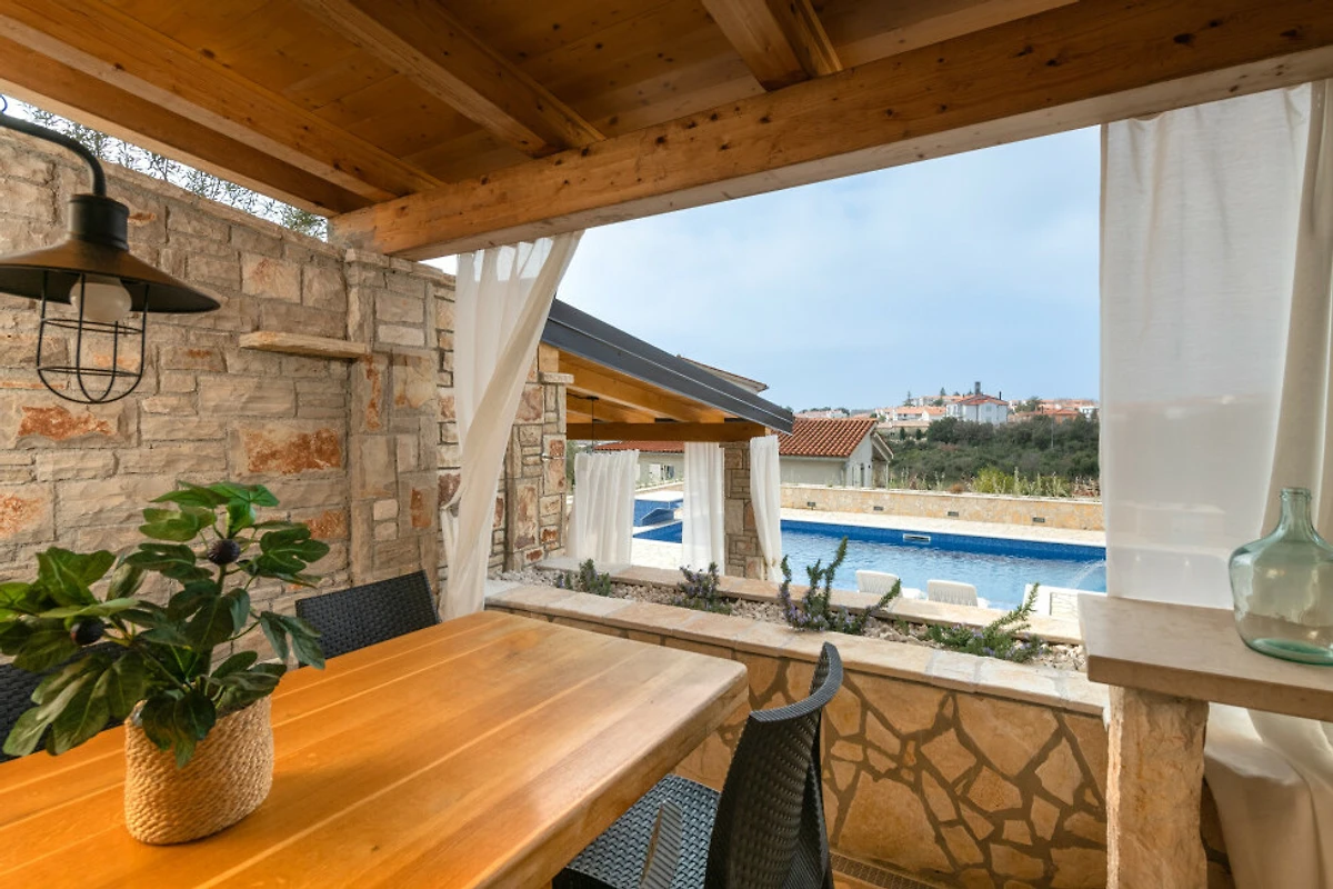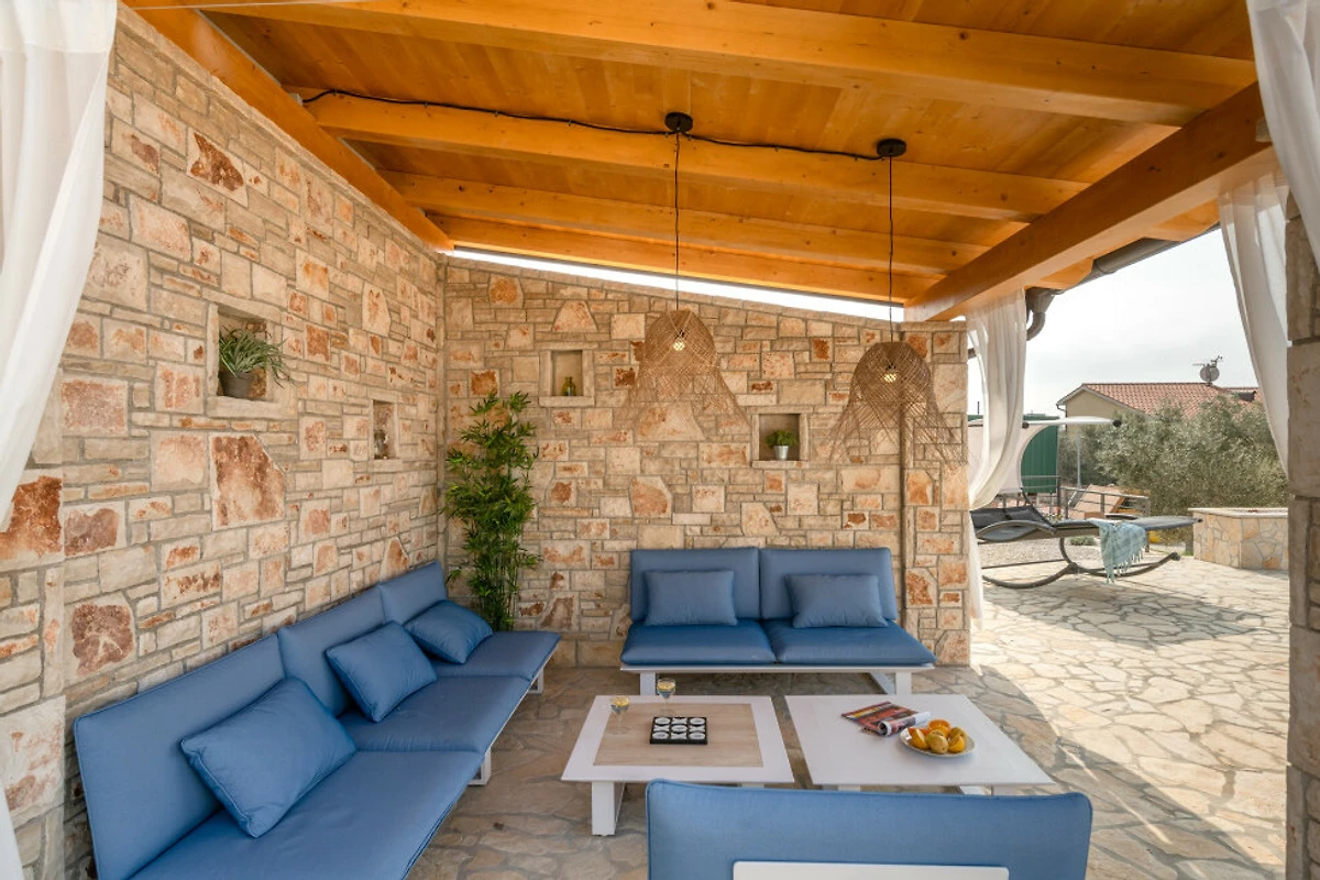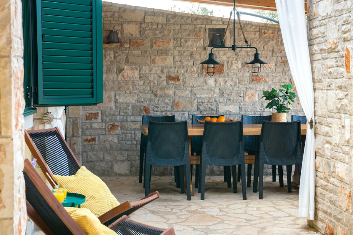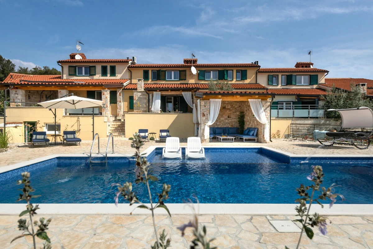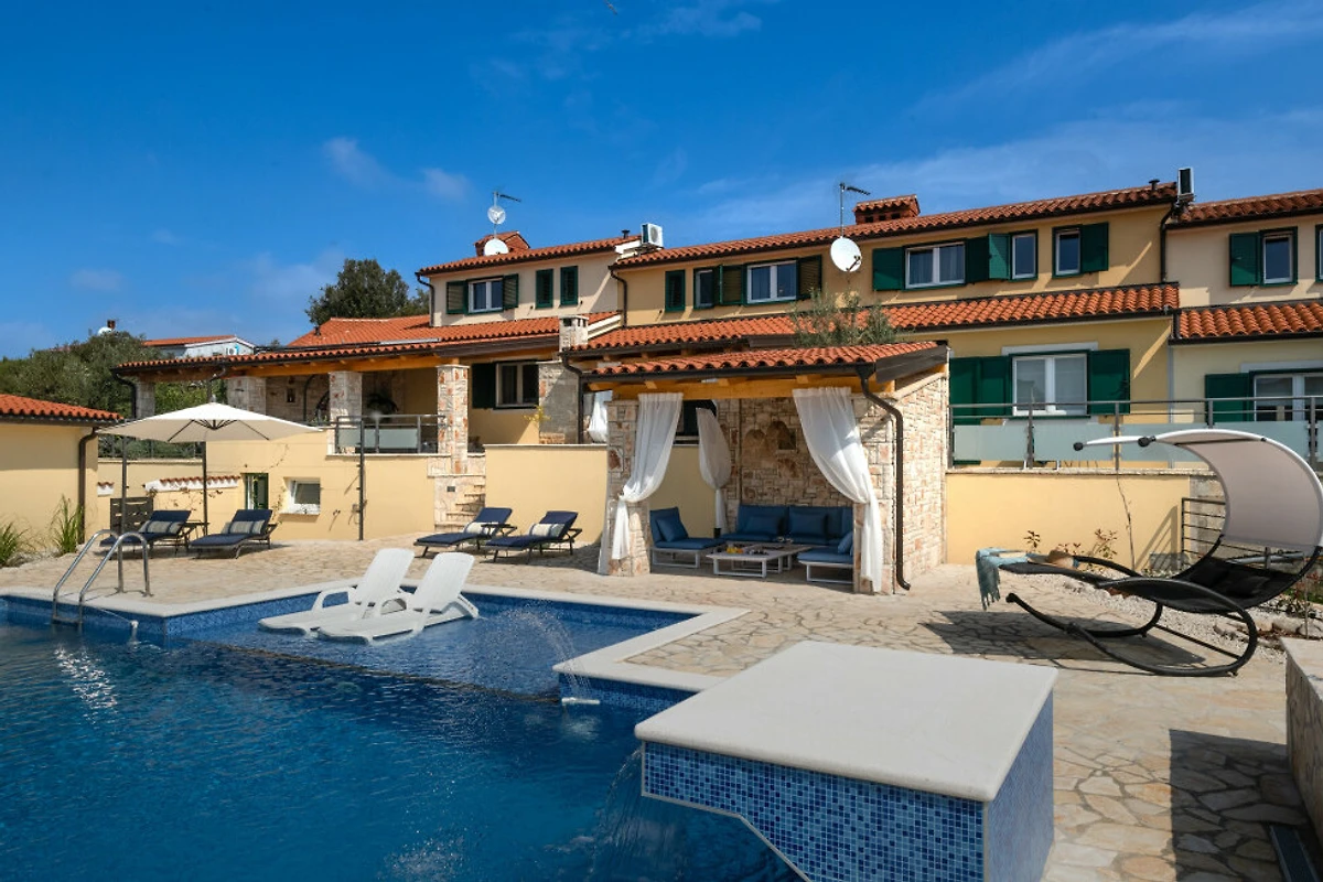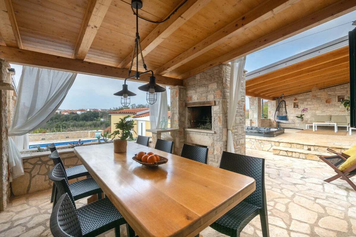 Scopri l'incantevole Kalista Istriana, una villa spaziosa immersa nel paesaggio rurale sereno di Vodnjan, perfetta per famiglie e coppie che cercano una fuga tranquilla. Questa stupenda proprietà offre un alloggio confortevole per fino a 10 ospiti, con 4 camere da letto matrimoniali lussuose e 4 bagni moderni con doccia.