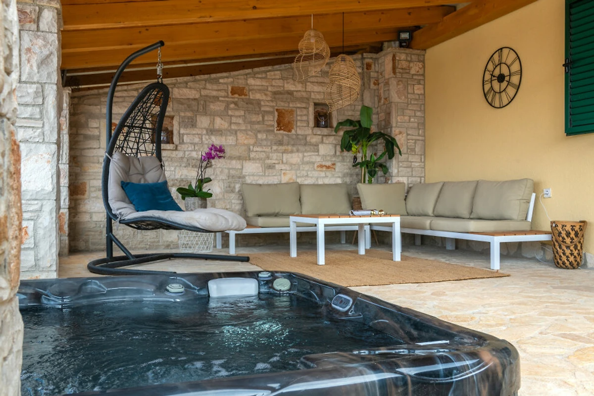 Gli appassionati di attività all'aperto ameranno le caratteristiche private, tra cui una spaziosa piscina da 10x4 metri, un giardino curato con maestria e una terrazza perfetta per il relax. La proprietà offre mobili da giardino, un'area barbecue e un appezzamento recintato per una maggiore privacy. Gli ospiti possono rilassarsi nella spa e nella jacuzzi, godendosi la vista mozzafiato della piscina e del giardino.