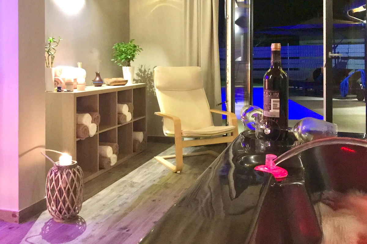 Gli appassionati di attività all'aperto ameranno la piscina privata (5x9 metri), perfetta per rinfrescanti tuffi. La proprietà include un bellissimo giardino, un appezzamento recintato, una terrazza e un'area barbecue, ideale per pranzi all'aperto e relax. Tra gli altri servizi: sauna, spa, aria condizionata e WiFi gratuito.